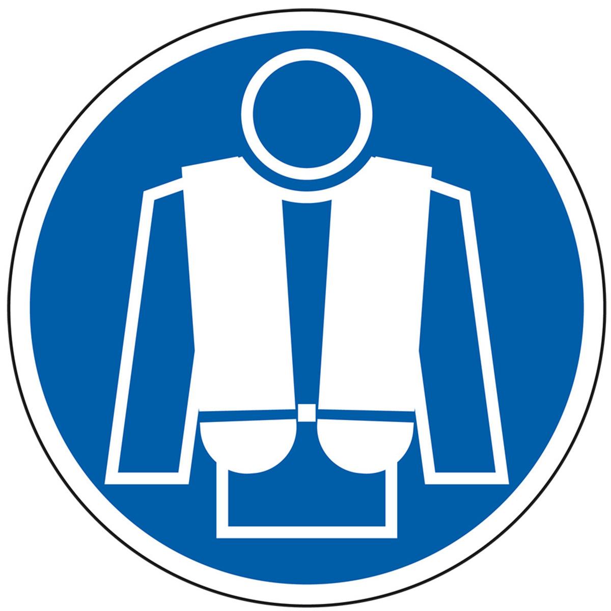 Schild, welches auf das Gebot hinweist, eine Rettungsweste zu tragen.
