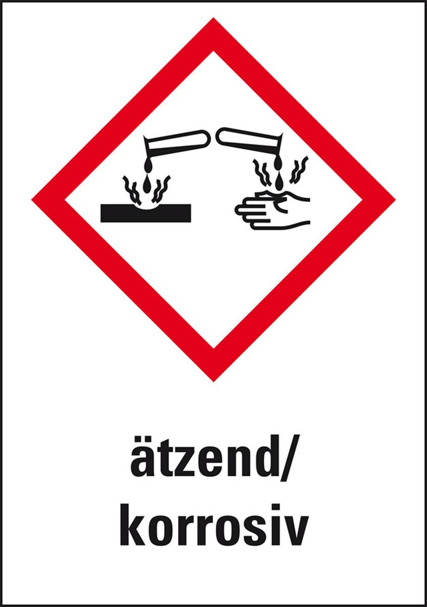 Gefahrensymbol Ätzwirkung GHS05 mit Piktogramm und Gefahrenmerkmal ätzend/korrosiv