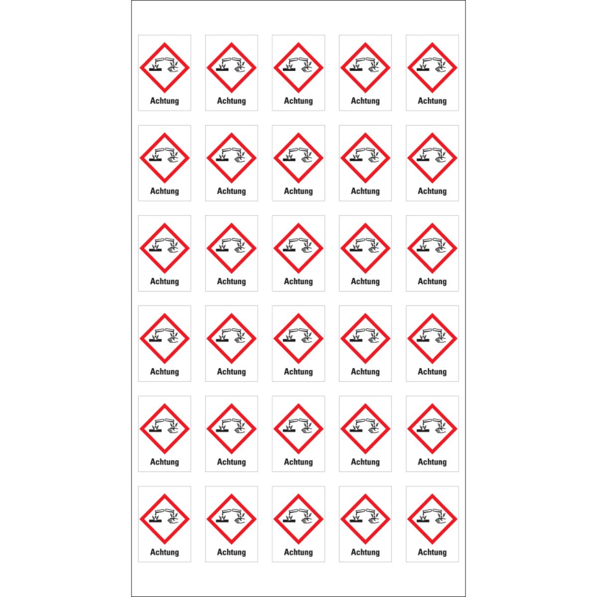 Auswahl: Gefahrensymbol Ätzwirkung GHS05, Achtung, Folie, 18x26mm, 30/Bogen