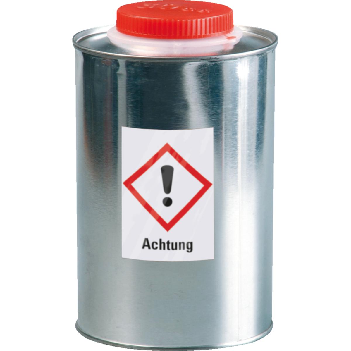 Gefahrensymbol "Ausrufezeichen GHS07 - Achtung" zur Kennzeichnung bei akuter Toxizität (oral, dermal, inhalativ), bei Haut- und Augenreizung, Sensibilisierung der Haut, betäubender Wirkung und spezifischer Zielorgan-Toxizität. Piktogramm und Signalwort.