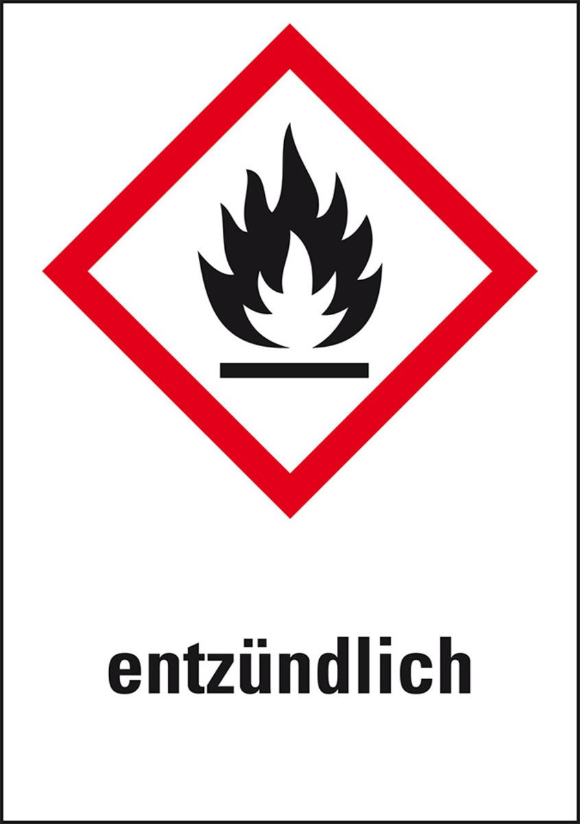 Gefahrensymbol Flamme GHS 02 mit Piktogramm und Gefahrenmerkmal entzündlich