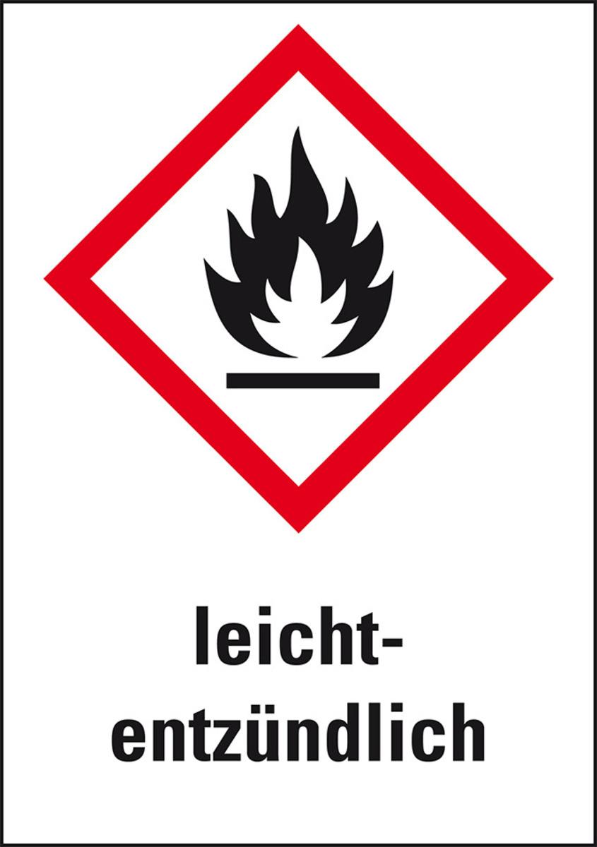 Gefahrensymbol Flamme GHS 02 mit Piktogramm und Gefahrenmerkmal leichtentzündlich