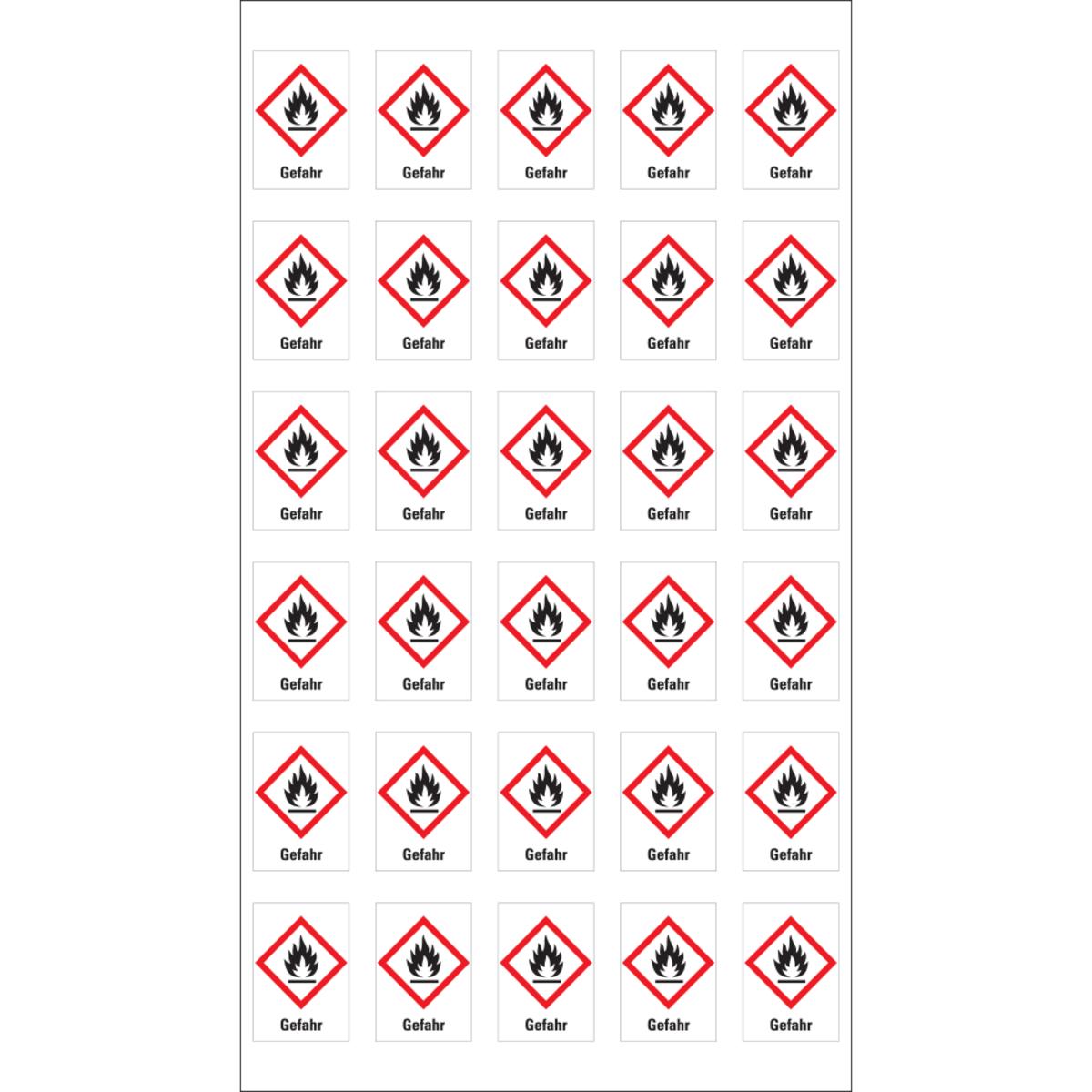 Auswahl: Gefahrensymbol Flamme GHS02, Gefahr, Folie, selbstklebend, 18x26mm, 30/Bogen