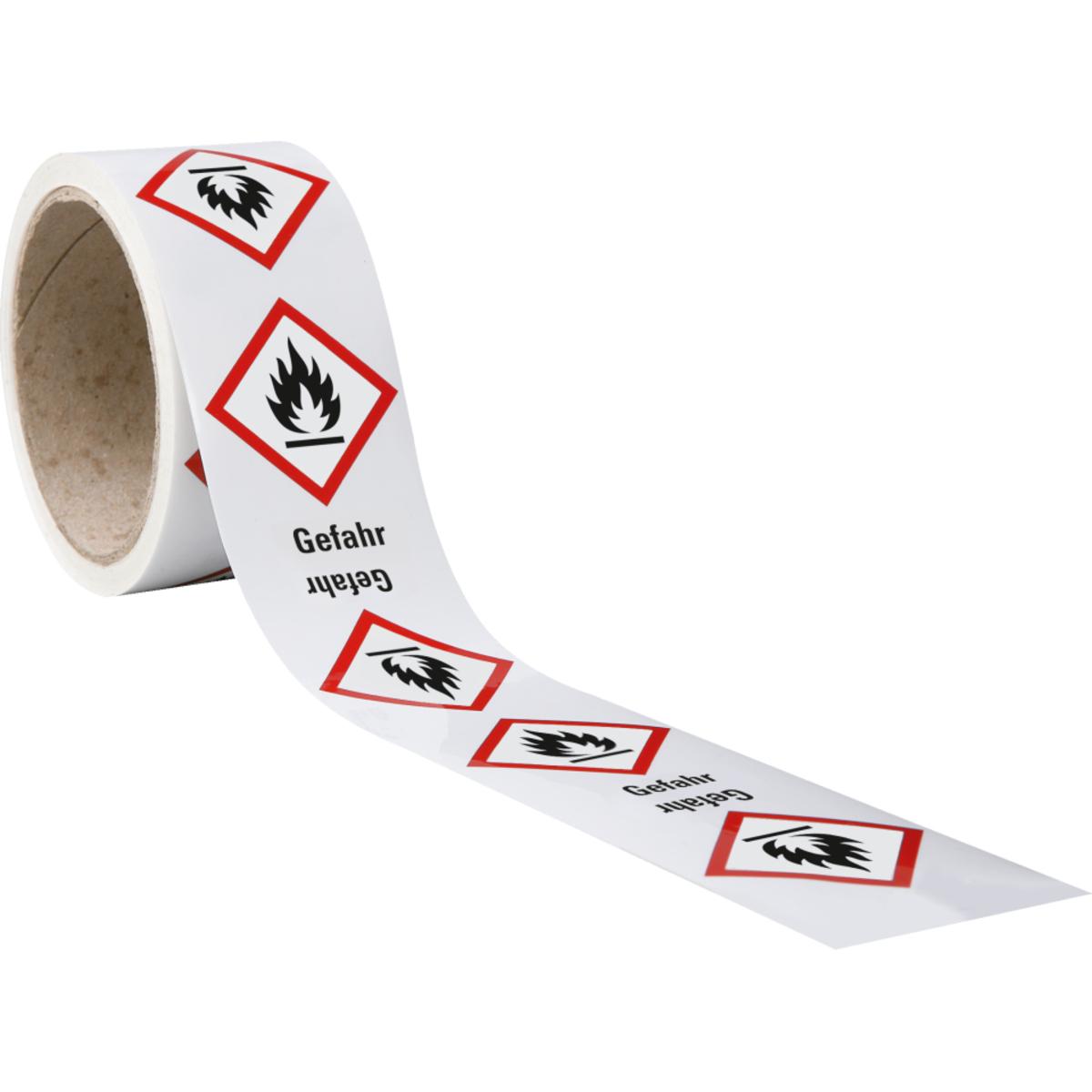Auswahl: Gefahrensymbol Flamme GHS02, Gefahr, Folie, 52x74mm, 500/Rolle