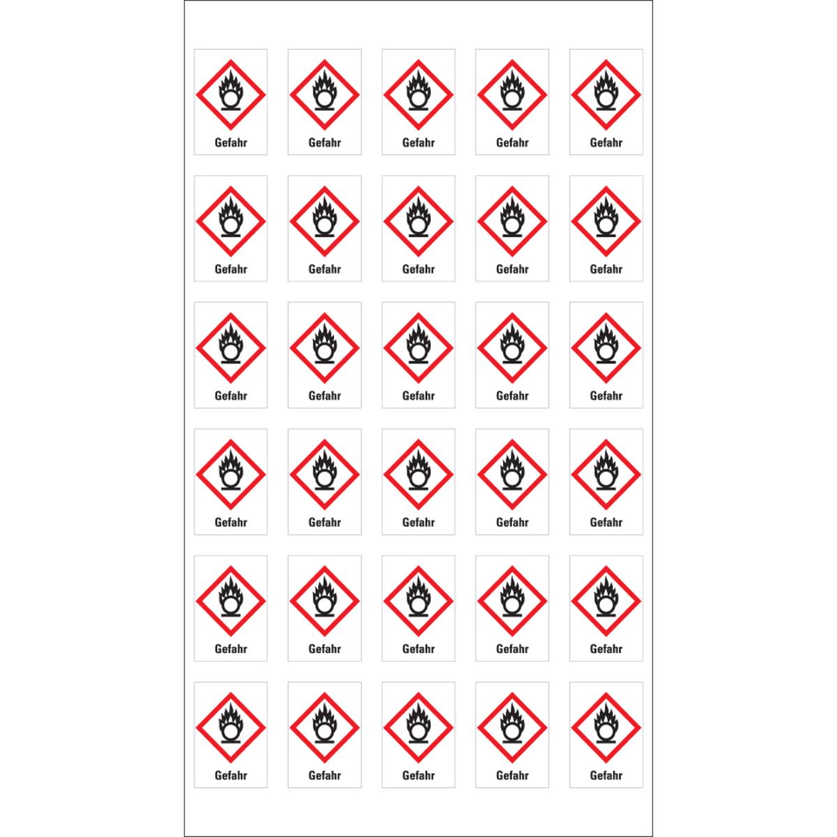 Auswahl: Gefahrensymbol Flamme über Kreis GHS03, Gefahr, Folie, selbstkl., 18x26mm, 30/Bogen