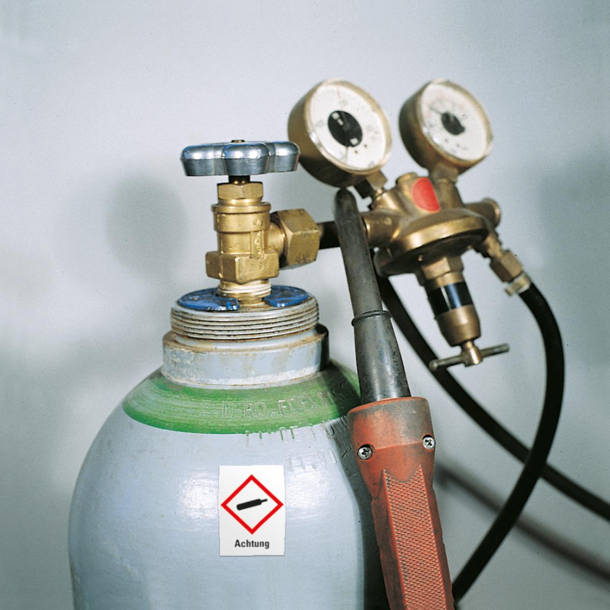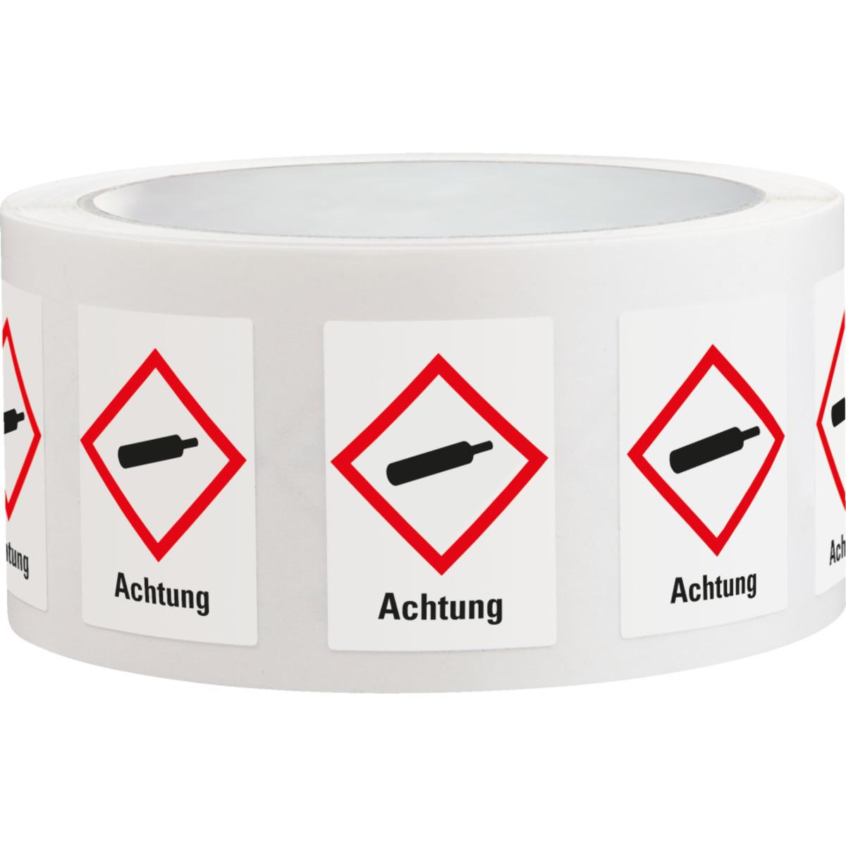 Auswahl: Gefahrensymbol Gasflasche GHS04, Achtung, Haftpapier, 18x26mm, 1000/Rolle