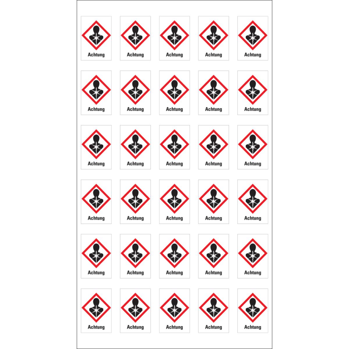 Auswahl: Gefahrensymbol Gesundheitsgefahr GHS08, Achtung, Folie, 18x26mm, 30/Bogen