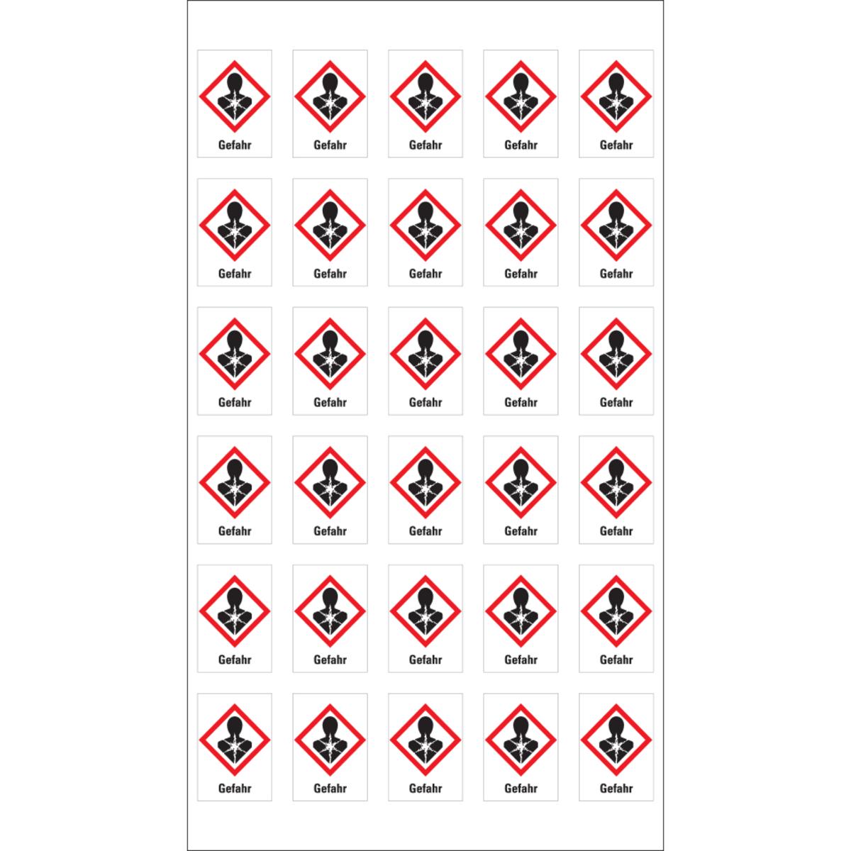 Auswahl: Gefahrensymbol Gesundheitsgefahr GHS08, Gefahr, Folie, 18x26mm, 30/Bogen