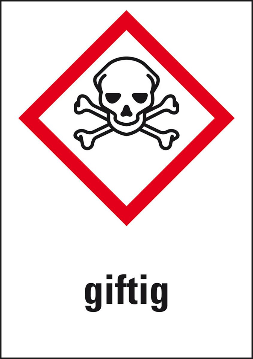 Gefahrensymbol Totenkopf mit gekreuzten Knochen GHS06 mit Piktogramm und Gefahrenmerkmal giftig, zur Kennzeichnung bei Toxizität (oral, dermal, inhalativ)