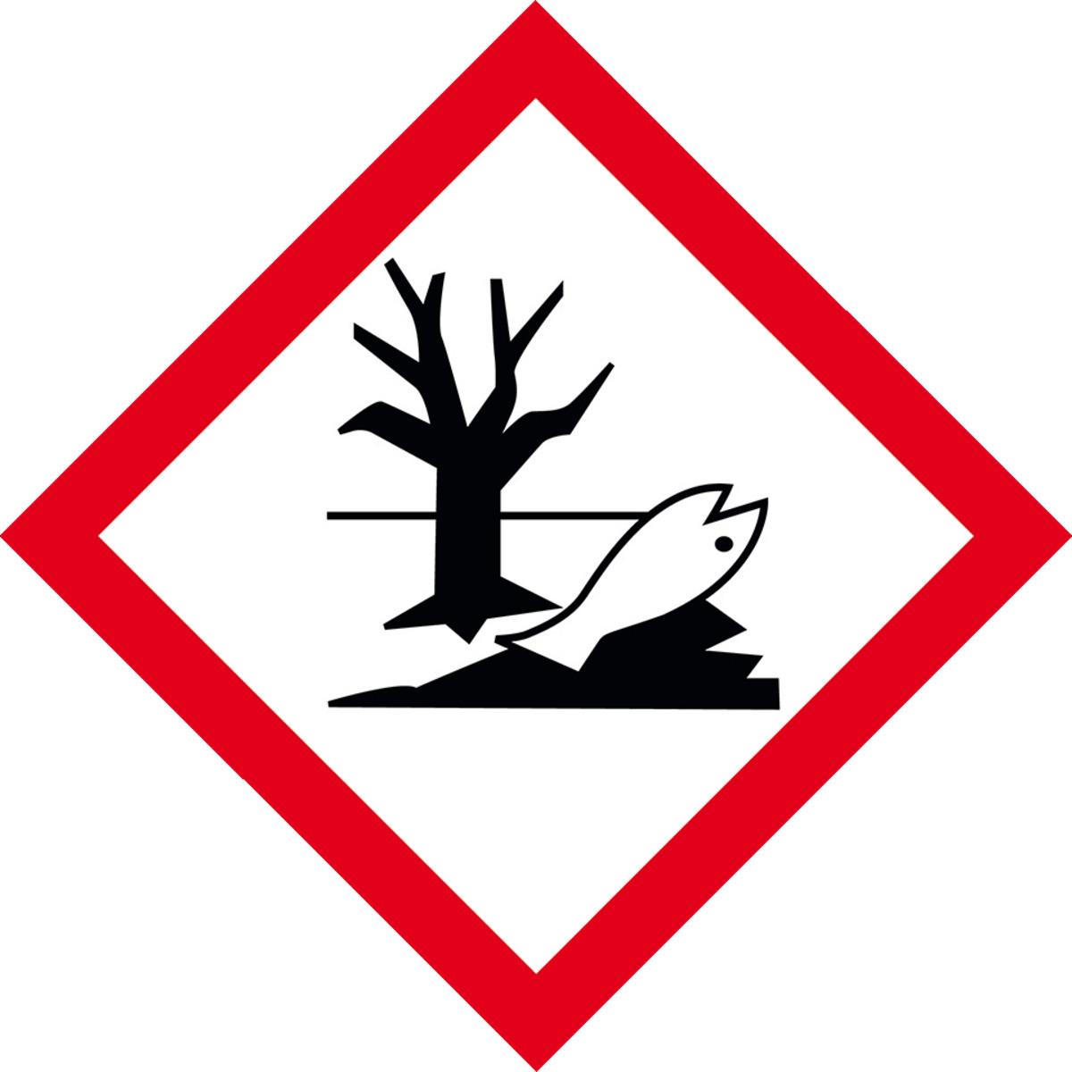 Gefahrensymbol "Umwelt GHS09" ohne Signalwort zur Kennzeichnung von gewässergefährdenden Stoffen.