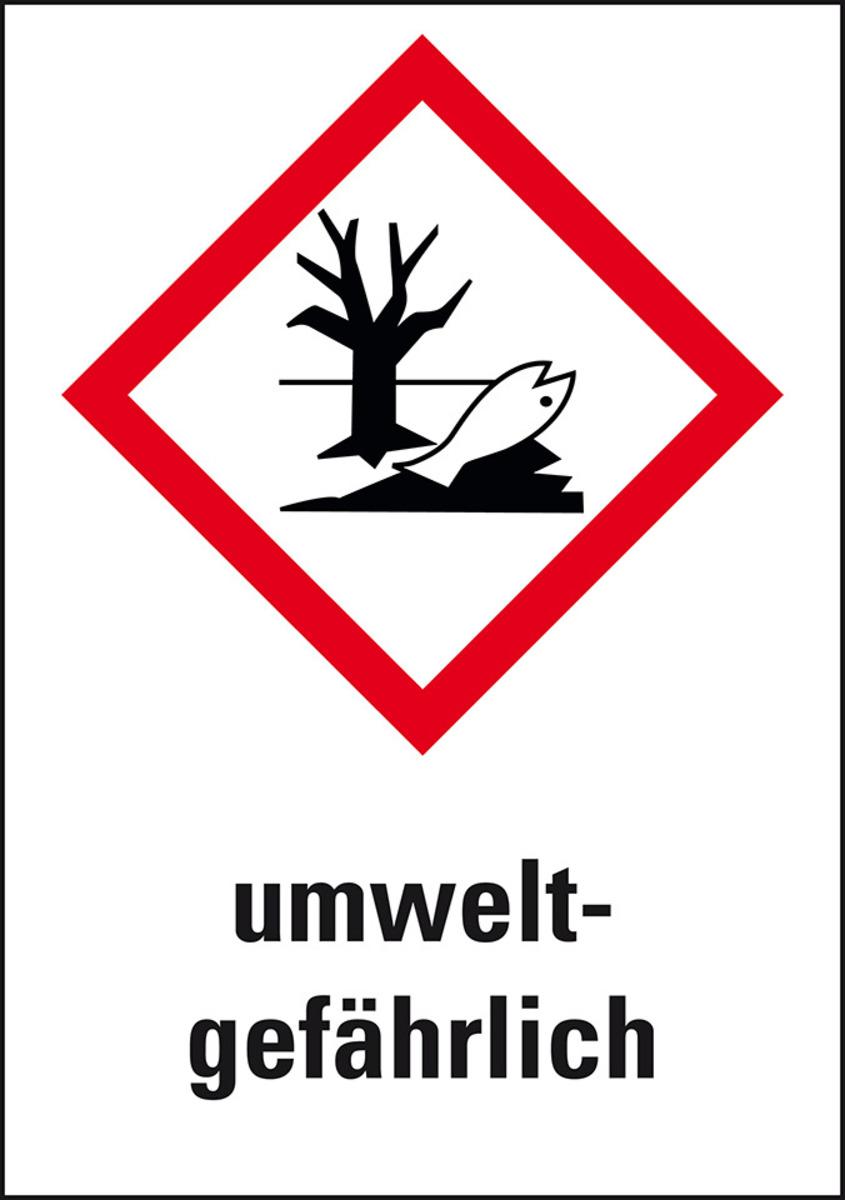 Gefahrensymbol Umwelt GHS09 mit Piktogramm und Gefahrenmerkmal umweltgefährlich