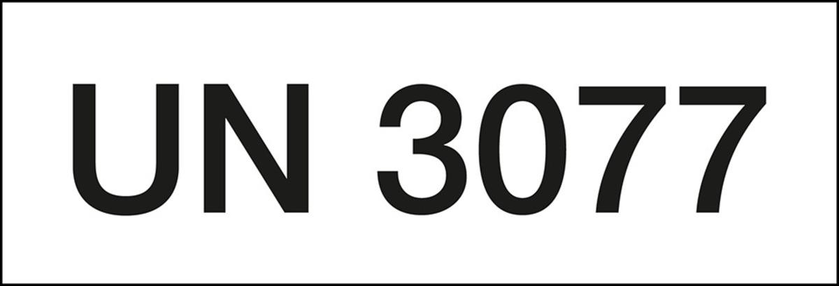 Gefahrgutaufkleber mit UN-Nummer 3077, umweltgefährdender Stoff, fest.