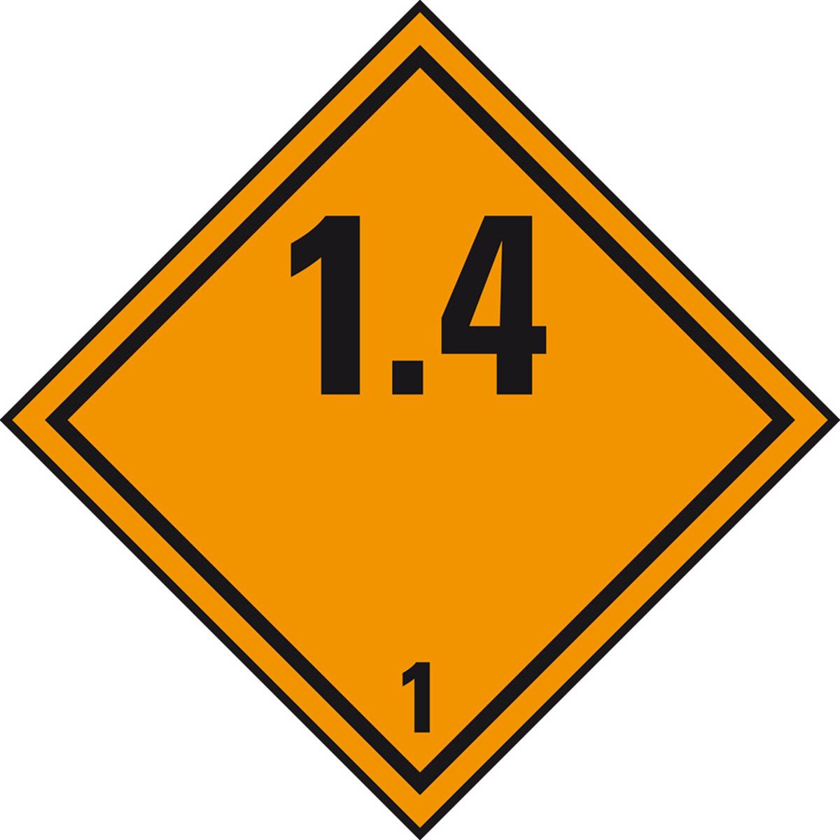 Informieren Sie mit dem Gefahrgutzettel Klasse 1.4 - "Explosive Stoffe (Unterklasse)" Spediteure und Empfänger über Inhalt und Handhabung der Versandstücke, um die Sicherheit des Gefahrguts und der beteiligten Personen zu gewährleisten.