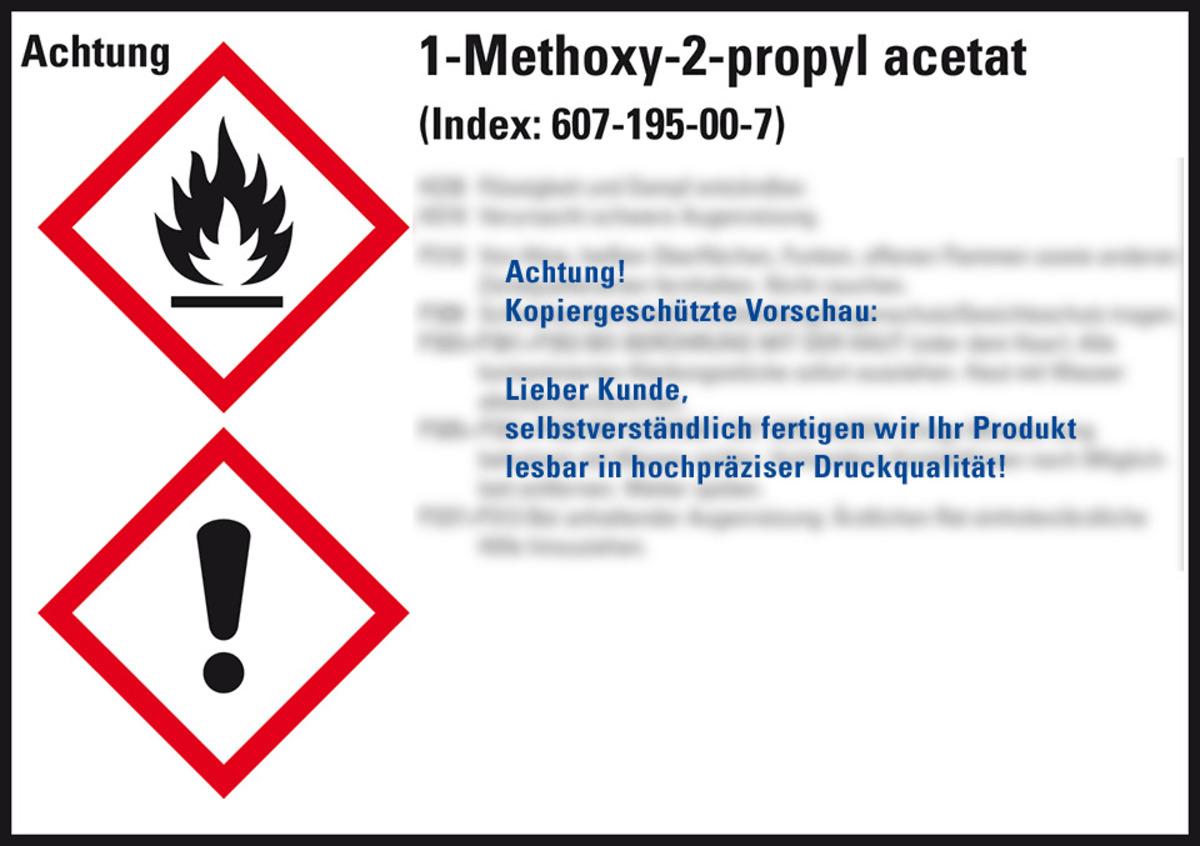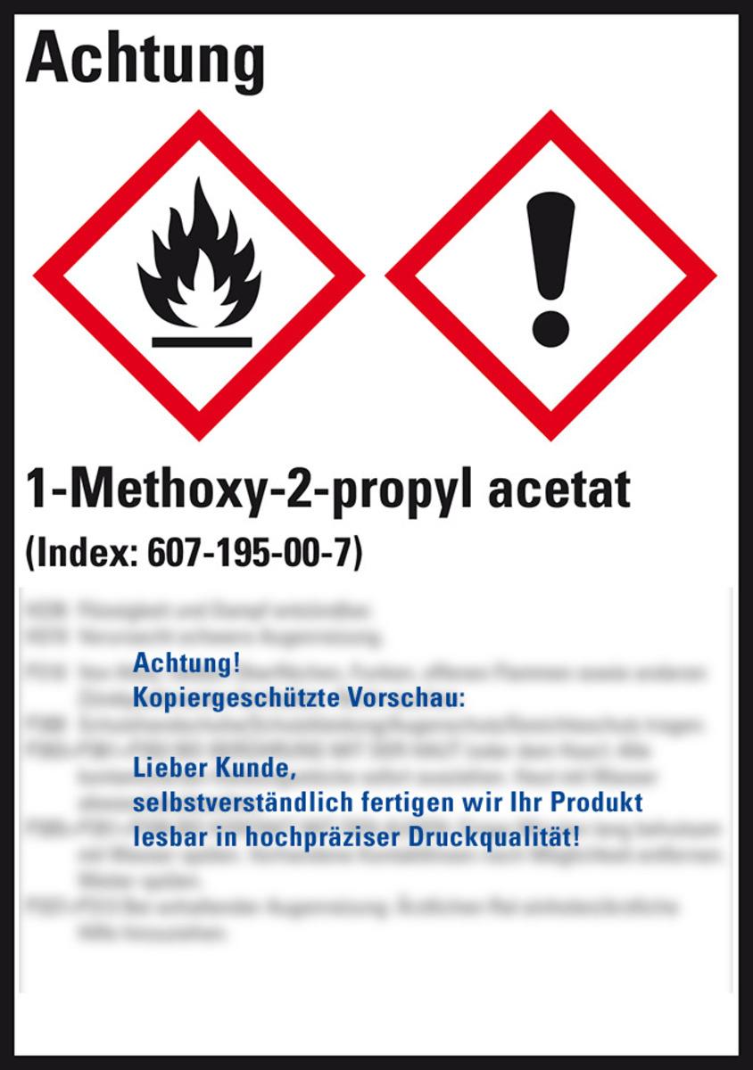 Auswahl: GHS-Etikett (1-Methoxy-2-propyl)-acetat, GefStoffV/GHS/CLP, Folie, 105x74mm, 8/Bogen