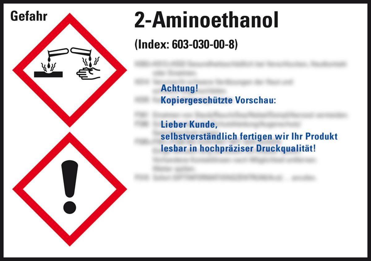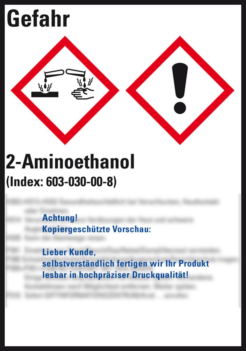 Auswahl: GHS-Etikett 2-Aminoethanol, gem.GefStoffV/GHS/CLP, Folie, 52x74mm, 10/Bogen