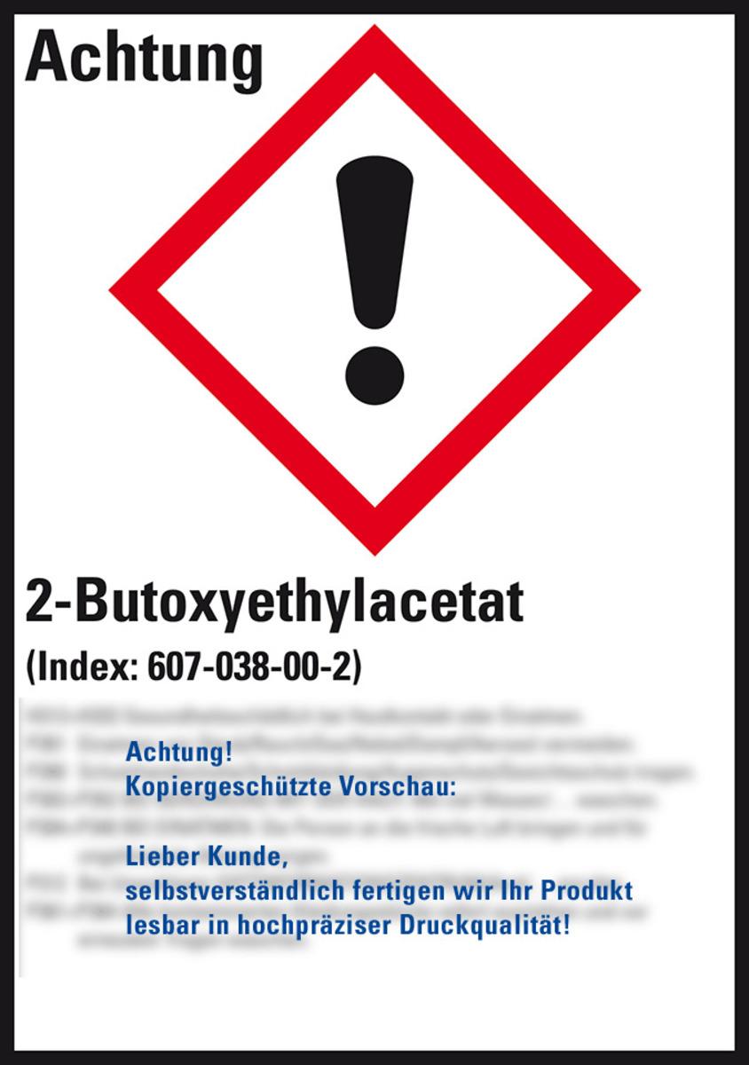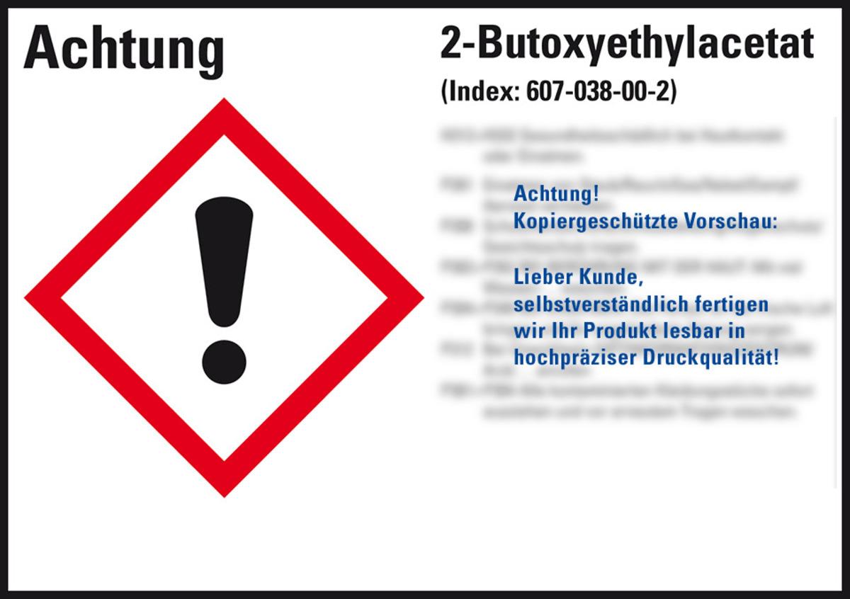 Auswahl: GHS-Etikett 2-Butoxyethylacetat, gem.GefStoffV/GHS/CLP, Folie, 105x74mm, 8/Bogen