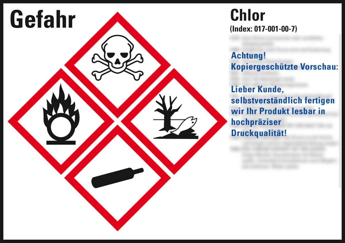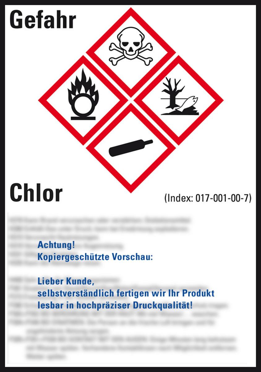 Auswahl: Gefahrstoffetikett Chlor, gem.GefStoffV/GHS/CLP, Folie, 52x74mm, 10/Bogen