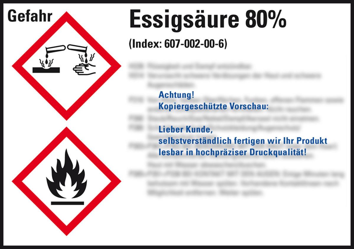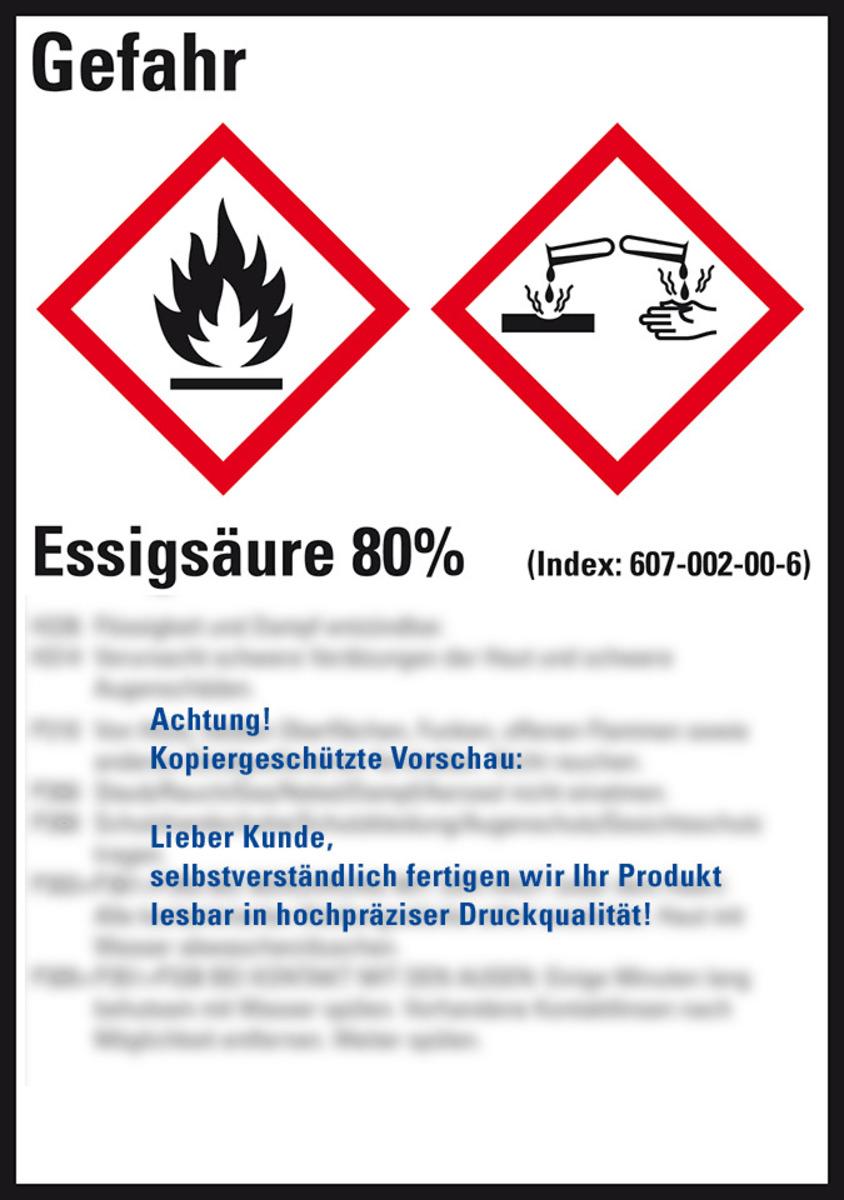 Auswahl: GHS-Etikett Essigsäure 80%, gem.GefStoffV/GHS/CLP, Folie, 105x74mm, 8/Bogen