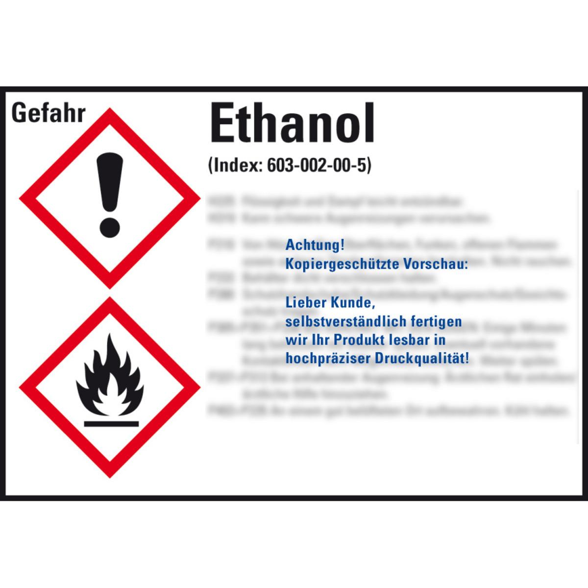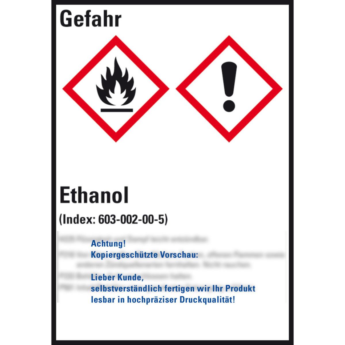 Auswahl: GHS-Etikett Ethanol, gem.GefStoffV/GHS/CLP, Folie, selbstklebend, 52x74mm, 10/Bogen