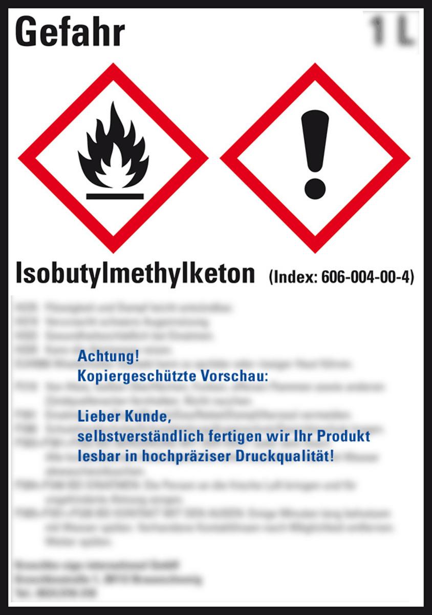 Gefahrstoffetikett zur Identifizierung und innerbetrieblichen Kennzeichnung von Stoffen und Gemischen