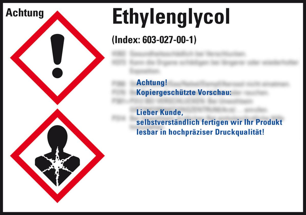 Auswahl: GHS-Etikett Ethylenglycol, gem.GefStoffV/GHS/CLP, Folie, 148x105mm, 4/Bogen