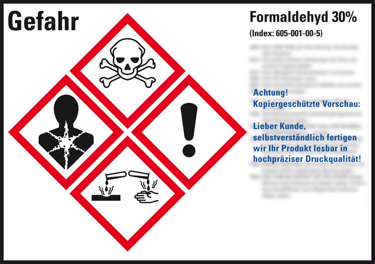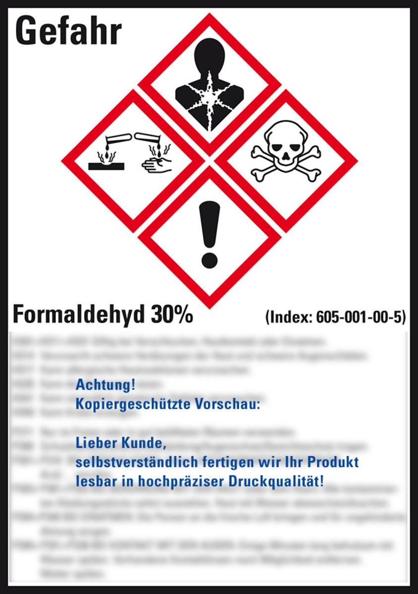Auswahl: GHS-Etikett Formaldehyd 30%, gem.GefStoffV/GHS/CLP, Folie, 148x105mm, 4/Bogen