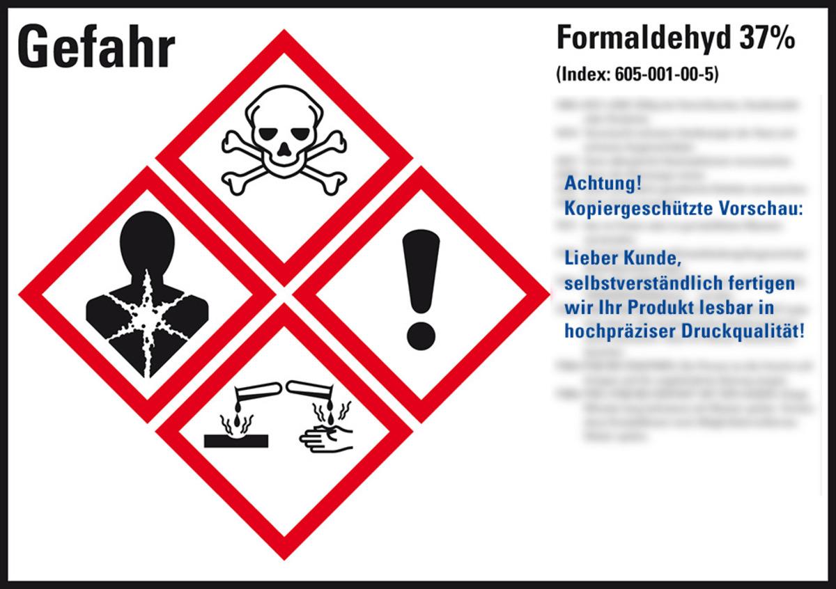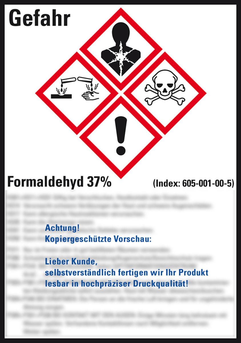Auswahl: GHS-Etikett Formaldehyd 37%, gem.GefStoffV/GHS/CLP, Folie, 105x74mm, 8/Bogen