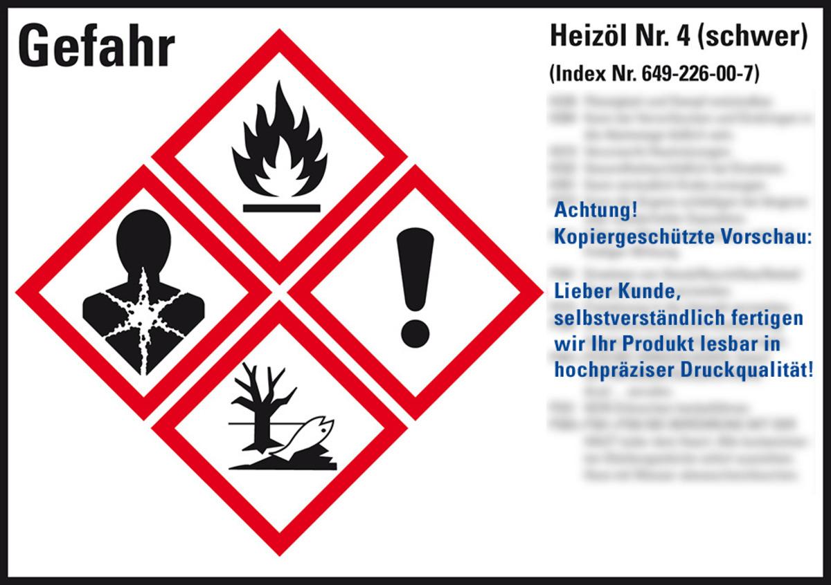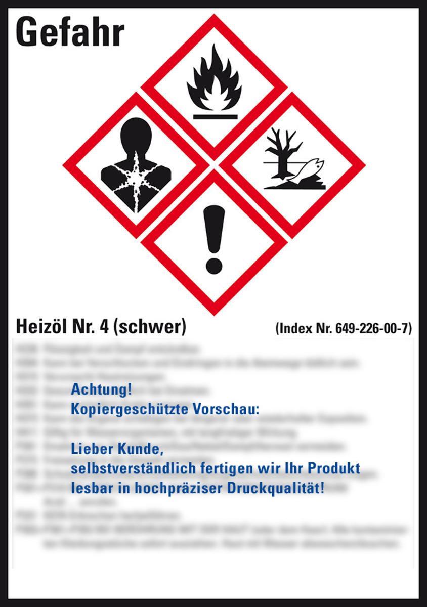 Auswahl: Gefahrstoffetikett Heizöl schwer, GefStoffV/GHS/CLP, Folie, 52x74mm, 10/Bogen