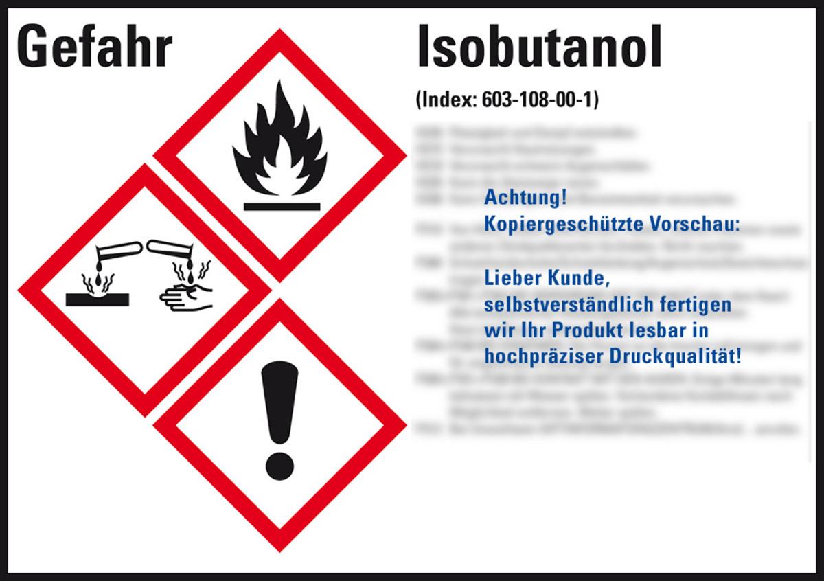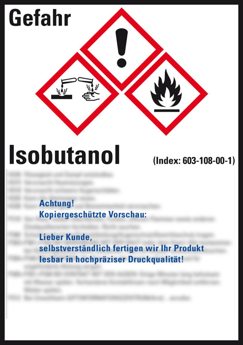 Auswahl: GHS-Etikett Isobutanol, gem.GefStoffV/GHS/CLP, Folie, 148x105mm, 4/Bogen