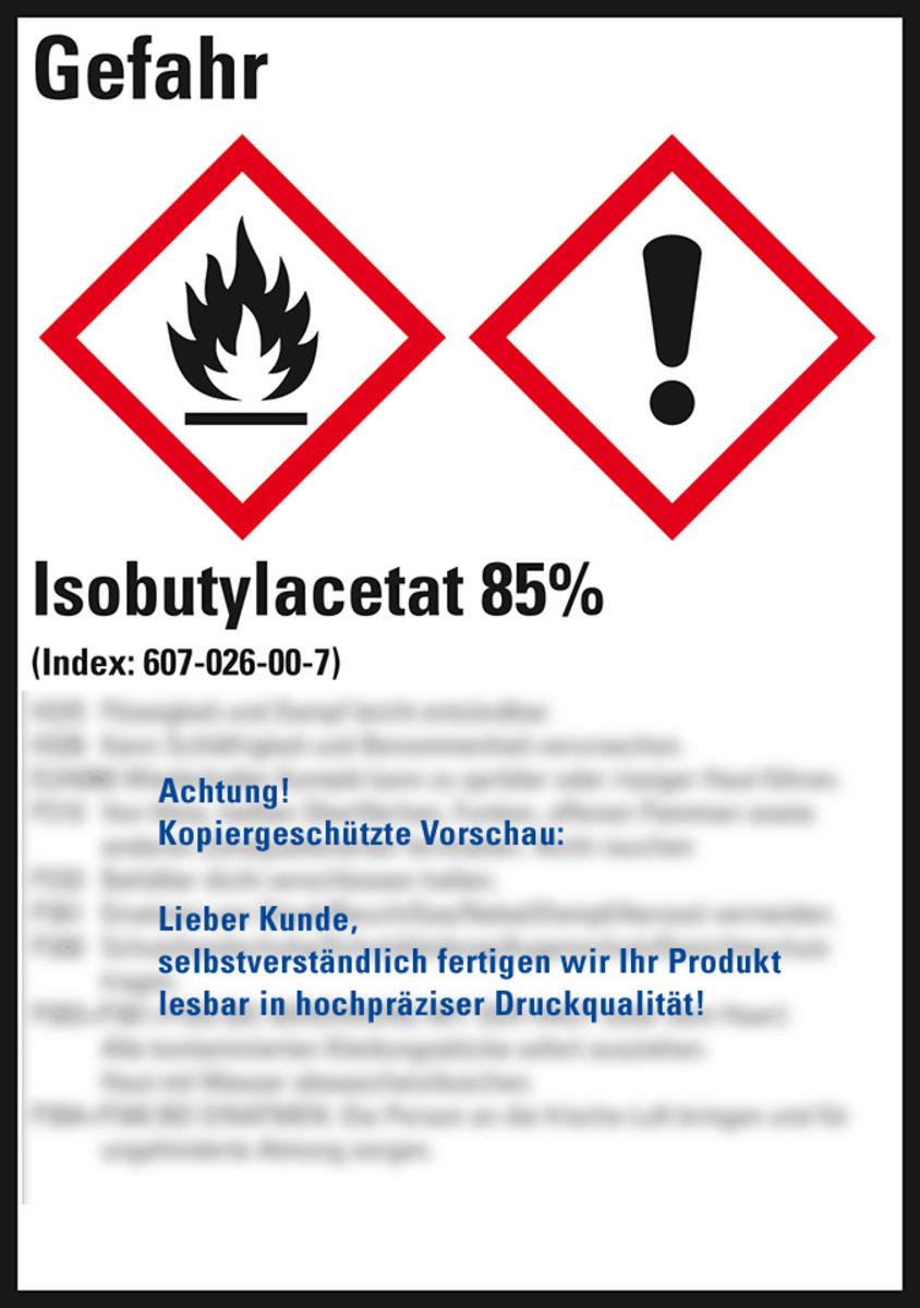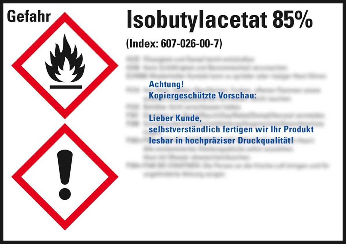 Auswahl: GHS-Etikett Isobutylacetat 85%, gem.GefStoffV/GHS/CLP, Folie, 52x74mm, 10/Bogen