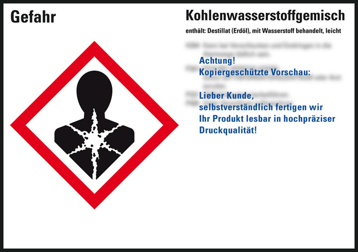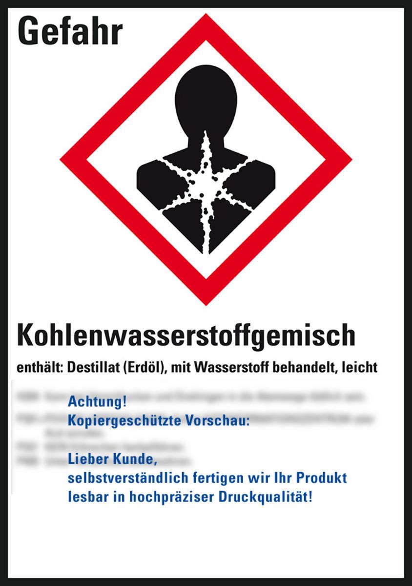 Auswahl: GHS-Etikett Kohlenwasserstoffgemisch, GefStoffV/GHS/CLP, Folie, 148x105mm, 4/Bogen