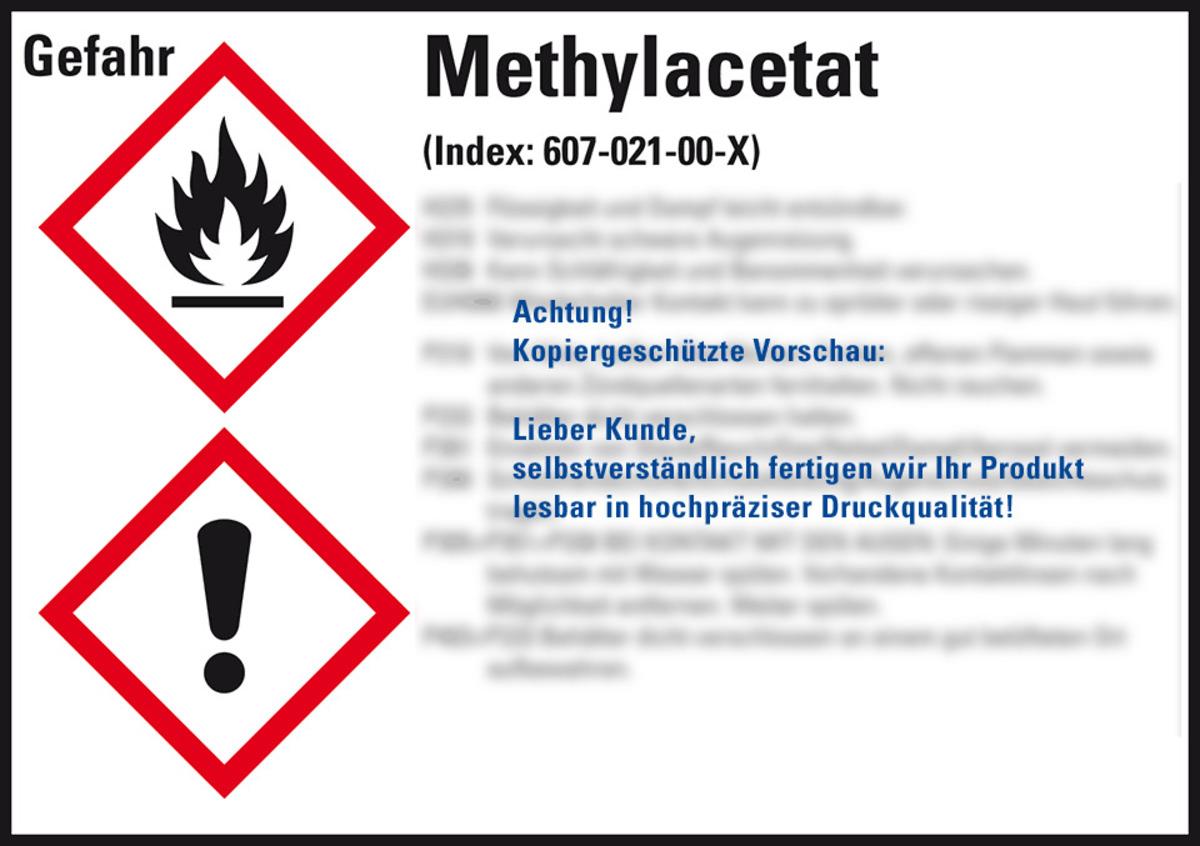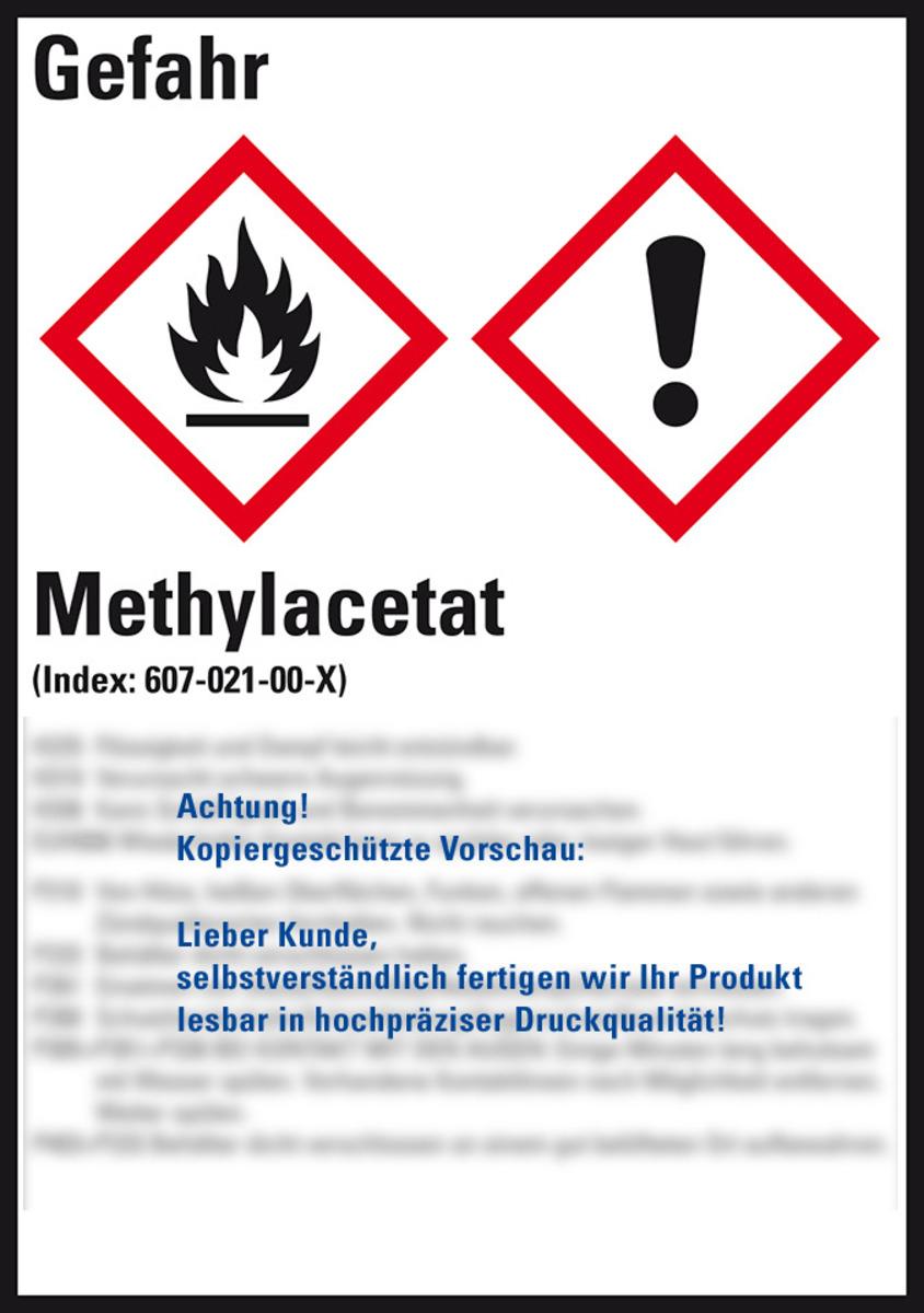 Auswahl: GHS-Etikett Methylacetat, gem.GefStoffV/GHS/CLP, Folie, 52x74mm, 10/Bogen