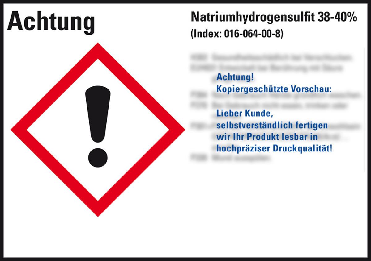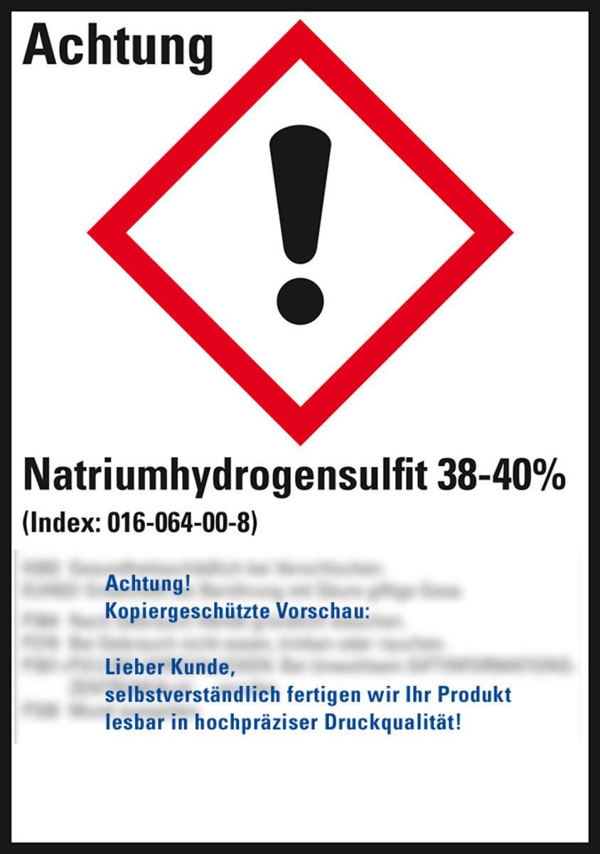 Auswahl: GHS-Etikett Natriumhydrogensulfit 38-40%, GefStoffV/GHS/CLP, 148x105mm, 4/Bogen