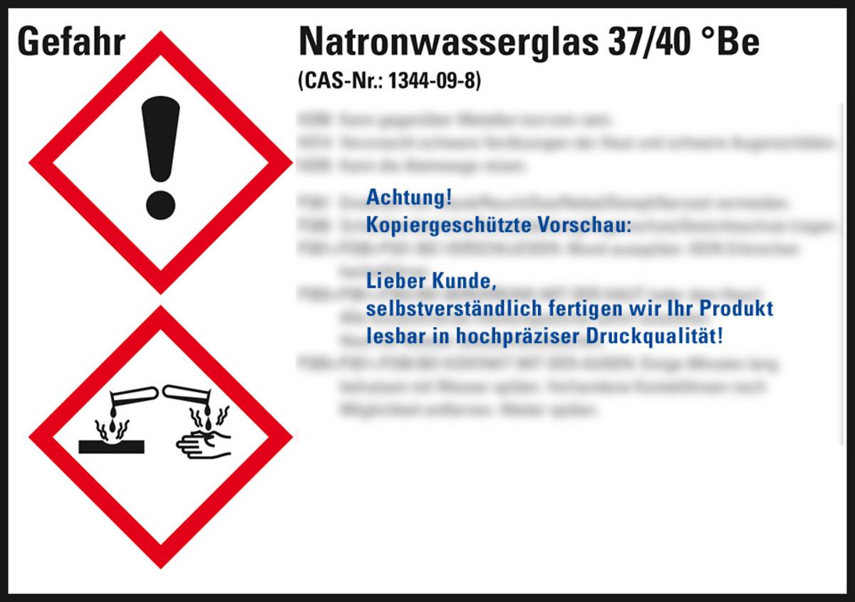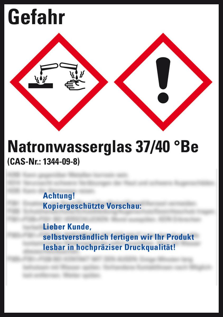 Auswahl: GHS-Etikett Natronwasserglas 37/40 °Be, GefStoffV/GHS/CLP, Folie, 148x105mm, 4/Bogen