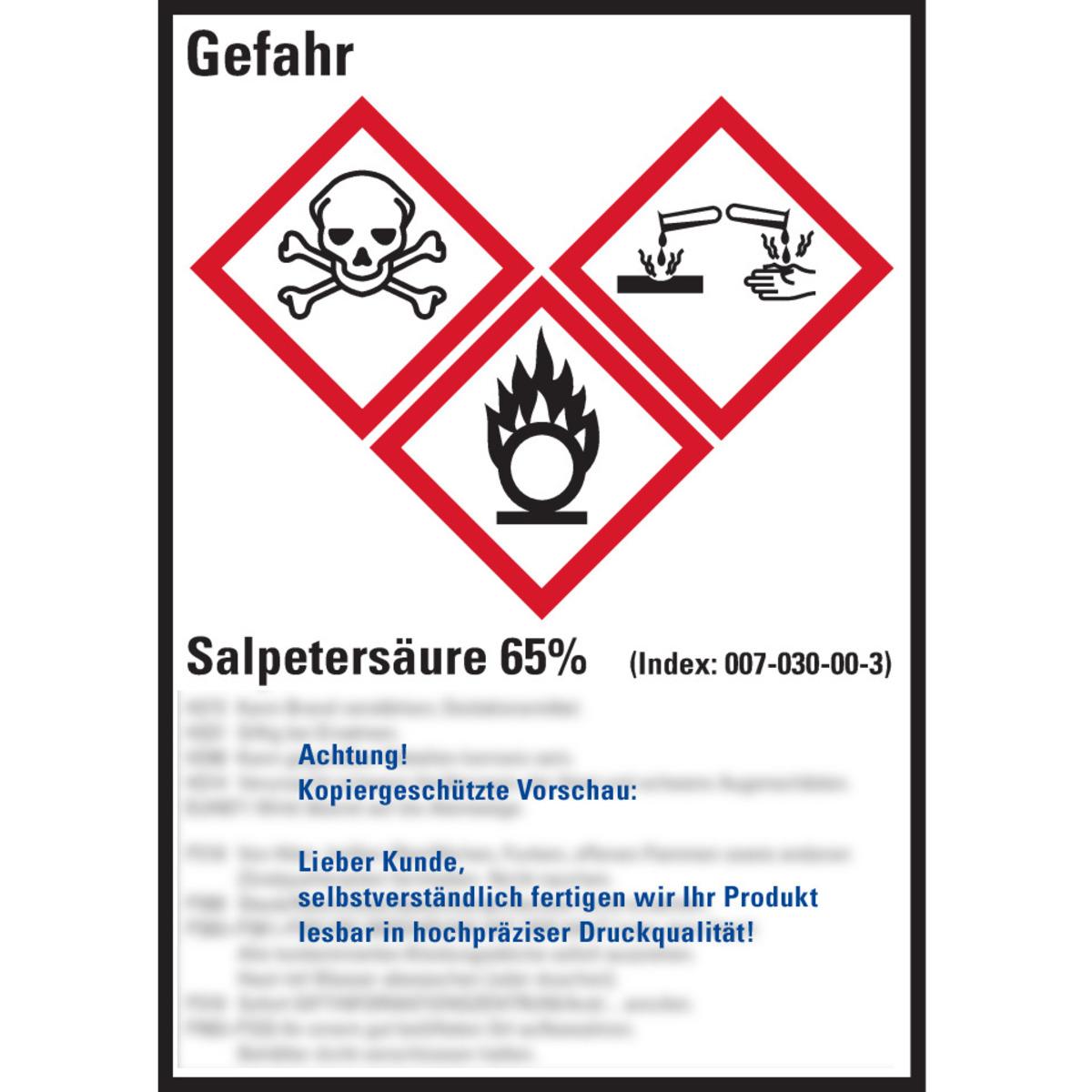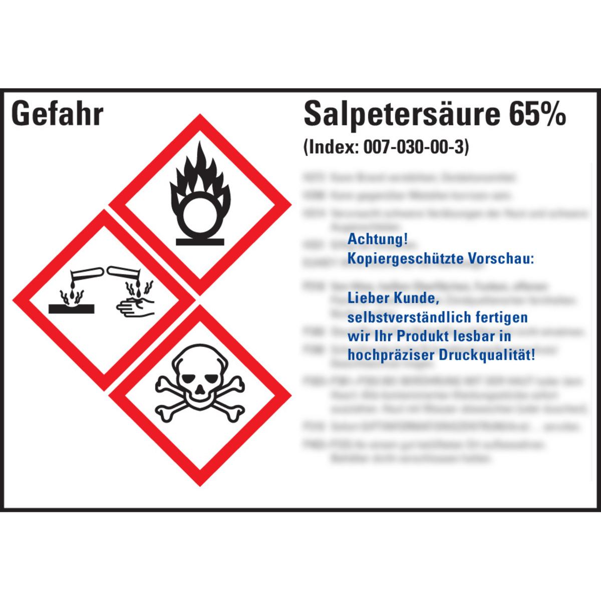 Auswahl: GHS-Etikett Salpetersäure 65%, gem.GefStoffV/GHS/CLP, Folie, 52x74mm, 10/Bogen