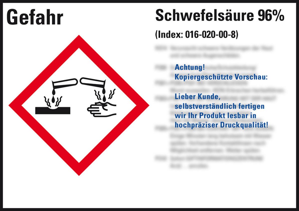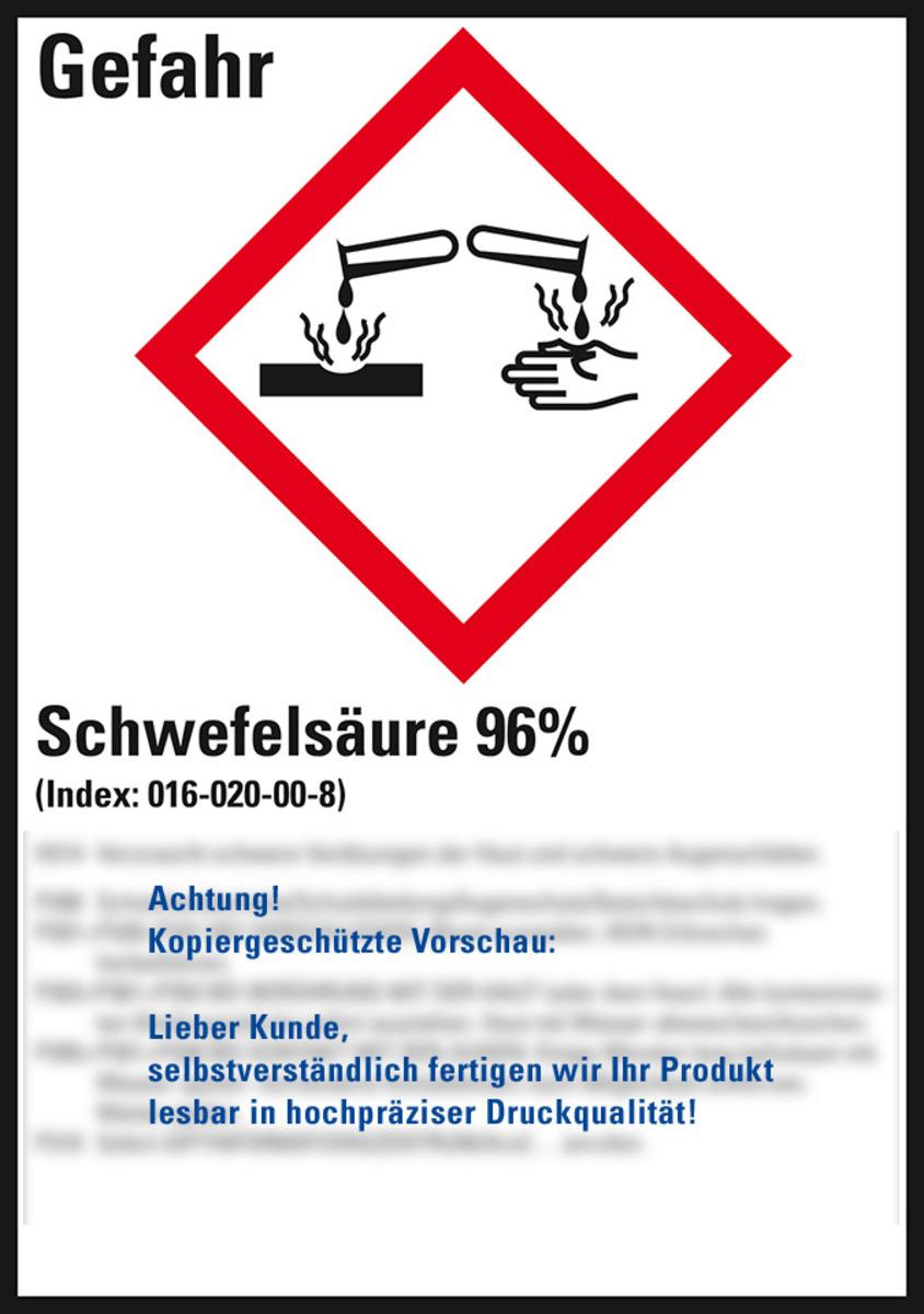 Auswahl: GHS-Etikett Schwefelsäure 96%, gem.GefStoffV/GHS/CLP, Folie, 52x74mm, 10/Bogen