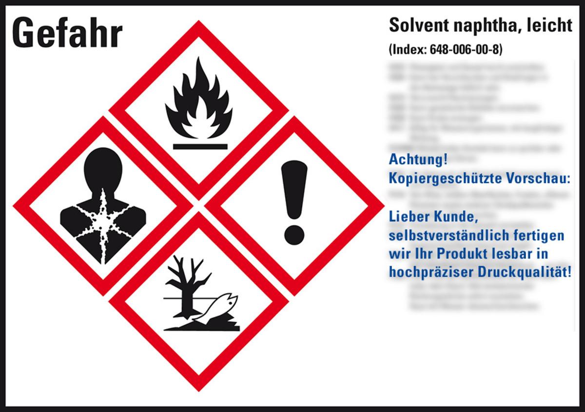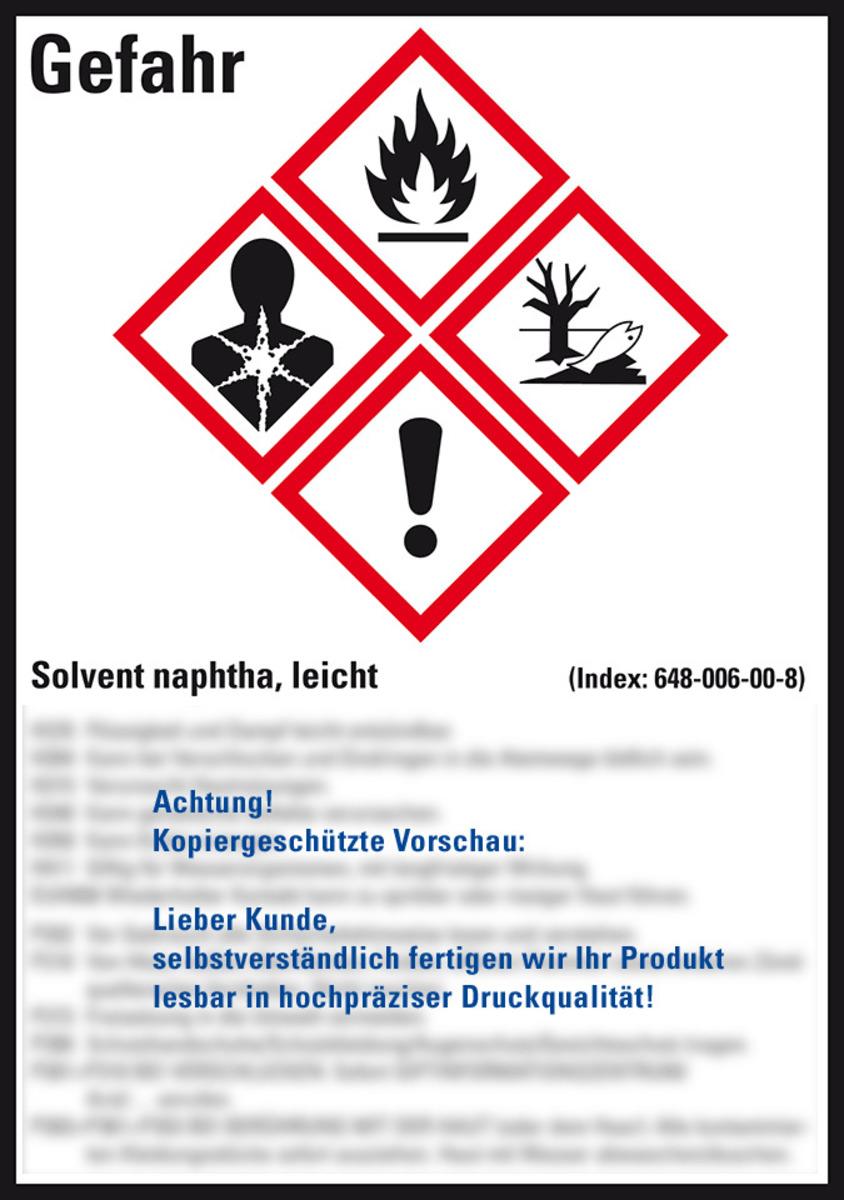 Auswahl: GHS-Etikett Solvent naphtha, leicht, gem.GefStoffV/GHS/CLP, Folie, 52x74mm, 10/Bogen