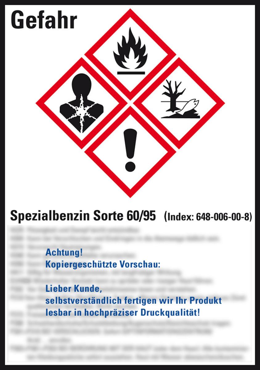 KSIGN Gefahrstoffetikett Spezialbenzin Sorte 60/95