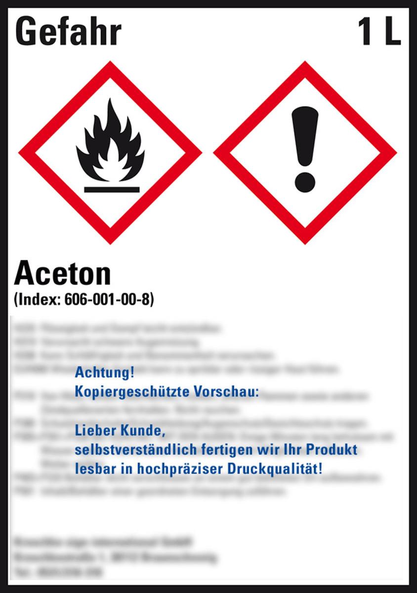 KSIGN Gefahrstoffetikett Text und Symbol nach Wunsch Aceton