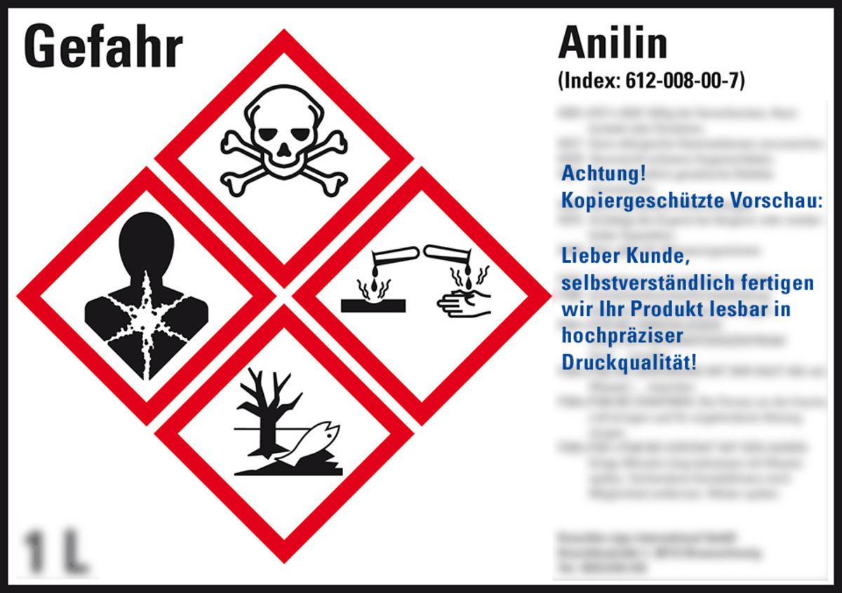 KSIGN Gefahrstoffetikett Text und Symbol nach Wunsch Anilin