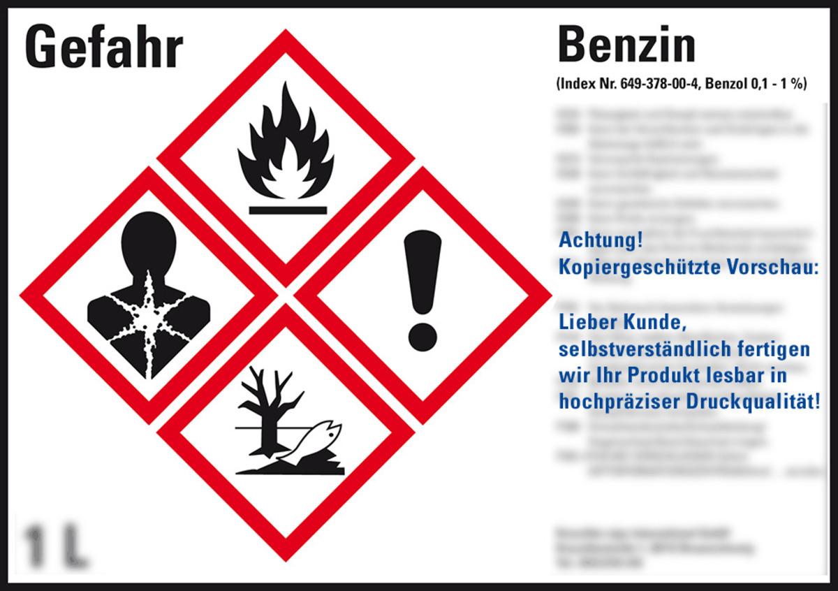 KSIGN Gefahrstoffetikett Text und Symbol nach Wunsch Benzin