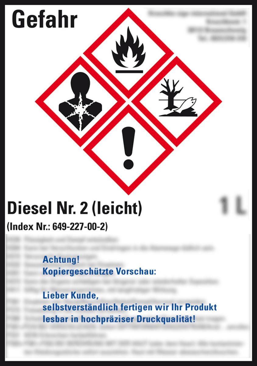 Auswahl: Gefahrstoffetikett Diesel No.2, nach Wunsch, GefStoffV/GHS/CLP, Folie, 52x74mm, 10/Bogen