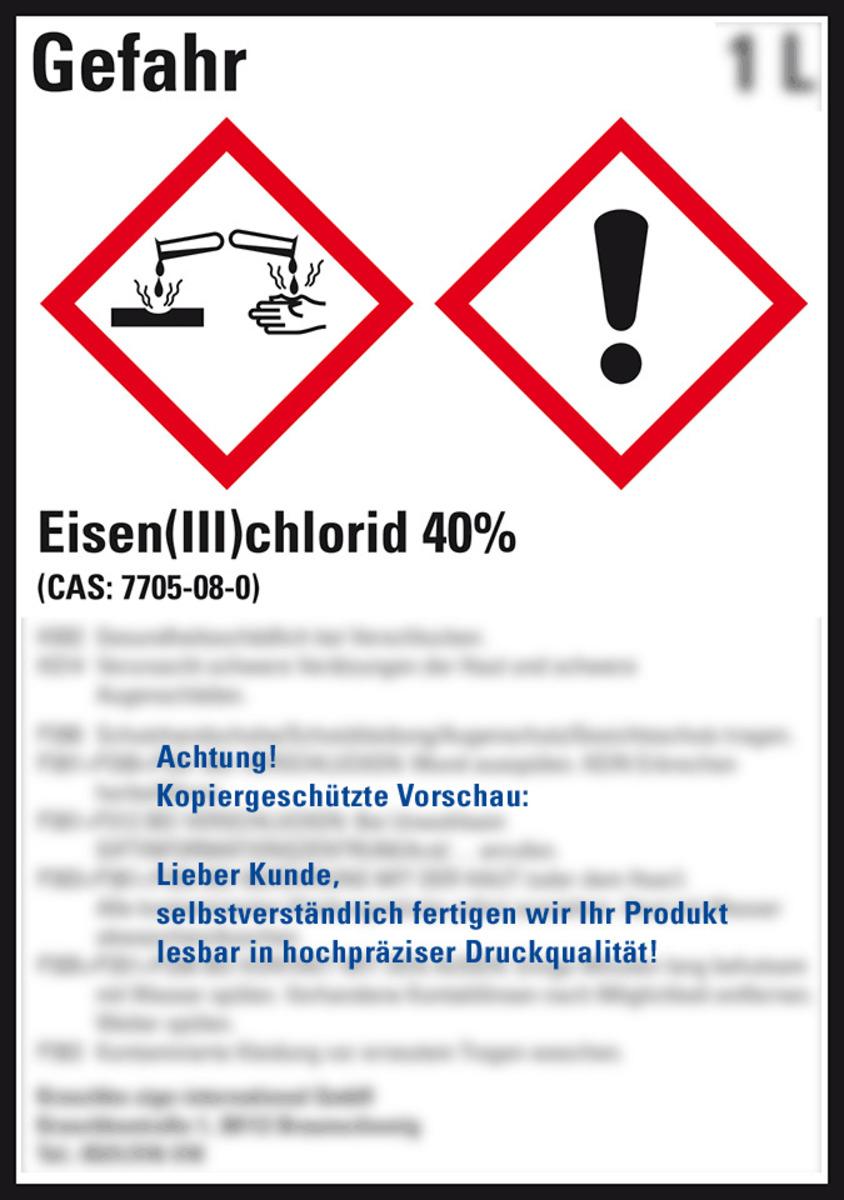 KSIGN Gefahrstoffetikett Text und Symbol nach Wunsch Eisen(III)chlorid 40 %