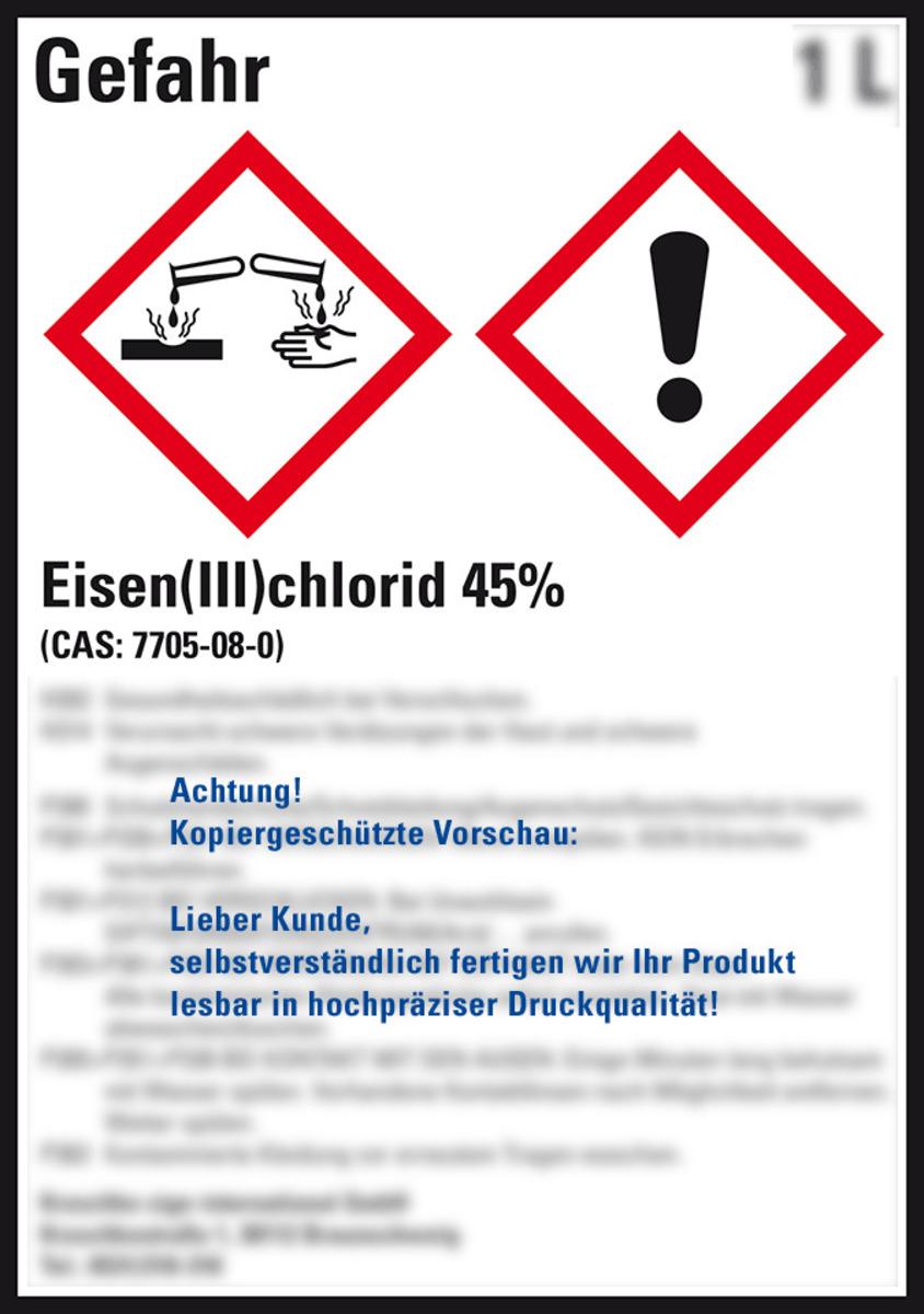 KSIGN Gefahrstoffetikett Text und Symbol nach Wunsch Eisen(III)chlorid 45 %