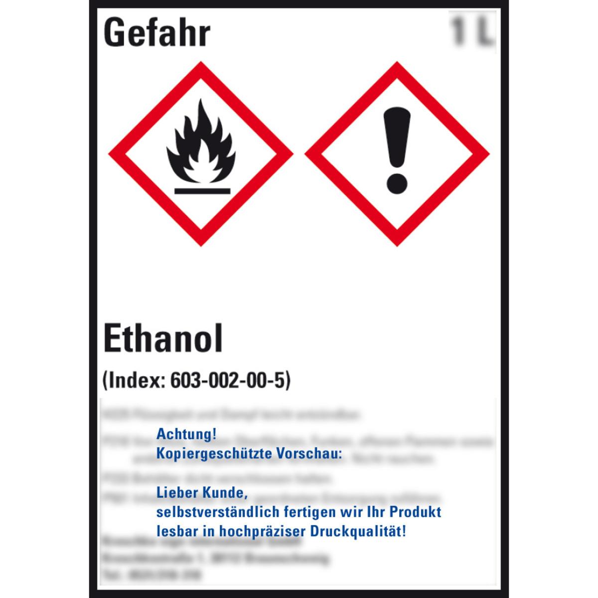 Auswahl: Gefahrstoffetikett Ethanol, nach Wunsch, GefStoffV/GHS/CLP, Folie, 52x74mm, 10/Bogen