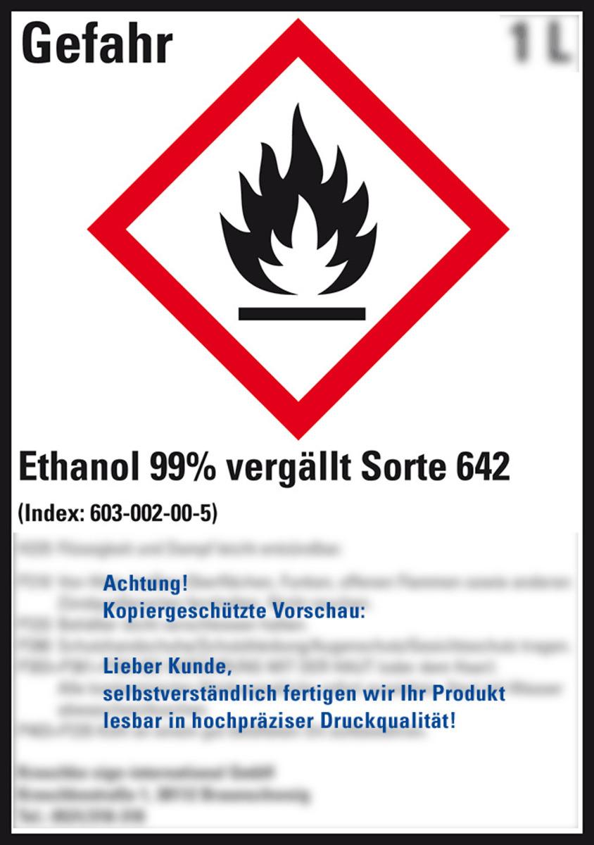 KSIGN Gefahrstoffetikett Text und Symbol nach Wunsch Ethanol 99 % vergällt Sorte 642
