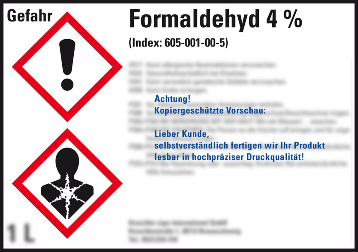 Auswahl: Gefahrstoffetikett Formaldehyd 4%, nach Wunsch, GefStoffV/GHS/CLP, Folie, 105x74mm, 8/Bogen