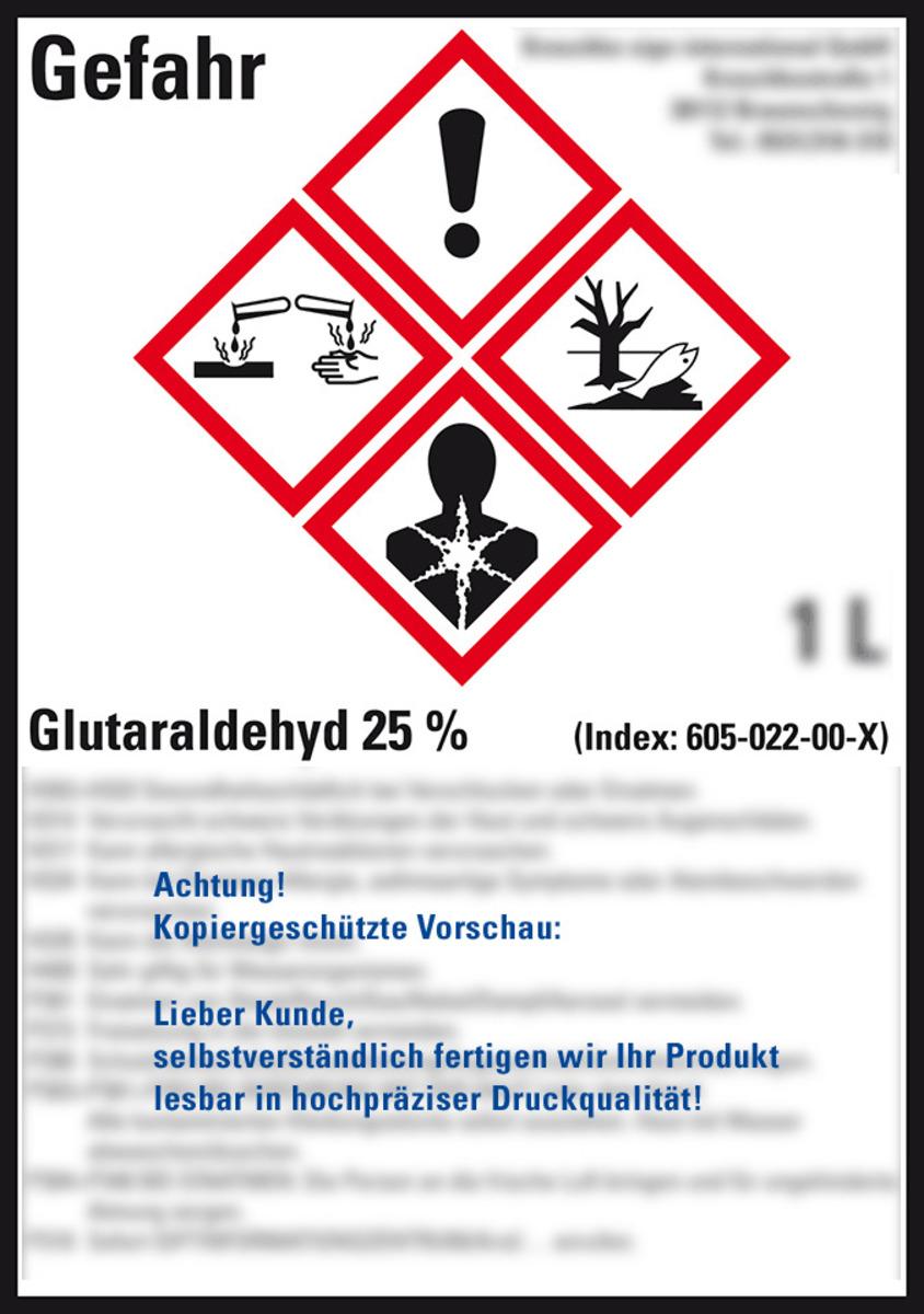 KSIGN Gefahrstoffetikett Text und Symbol nach Wunsch Glutaraldehyd 25 %