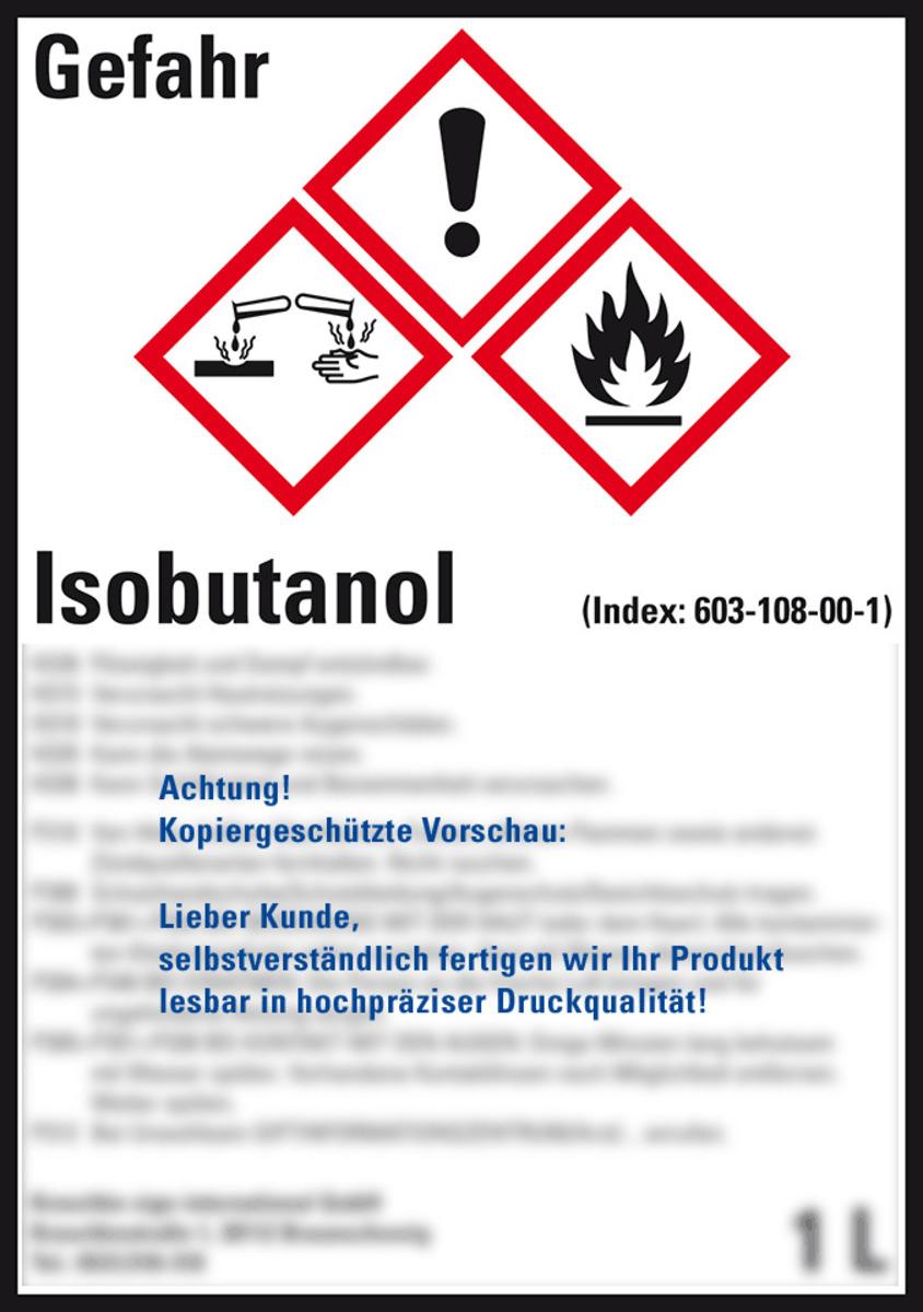 KSIGN Gefahrstoffetikett Text und Symbol nach Wunsch Isobutanol