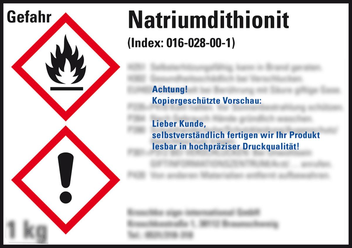 KSIGN Gefahrstoffetikett Text und Symbol nach Wunsch Natriumdithionit
